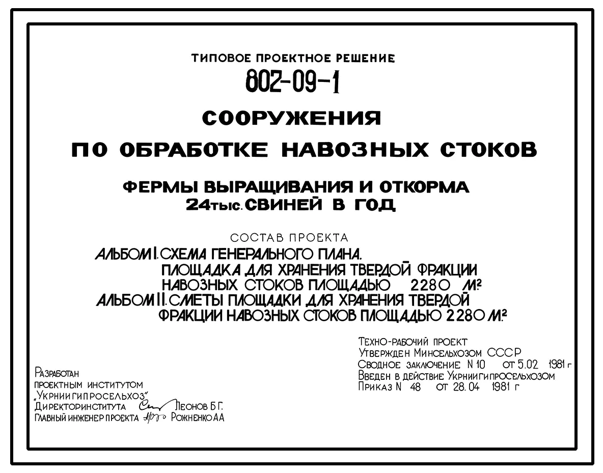 Типовой проект 802-09-1 Сооружения по обработке навозных стоков фермы выращивания и откорма 24 тыс. свиней в год