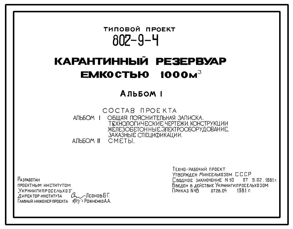 Типовой проект 802-9-4 Карантинный резервуар емкостью 1000 м?