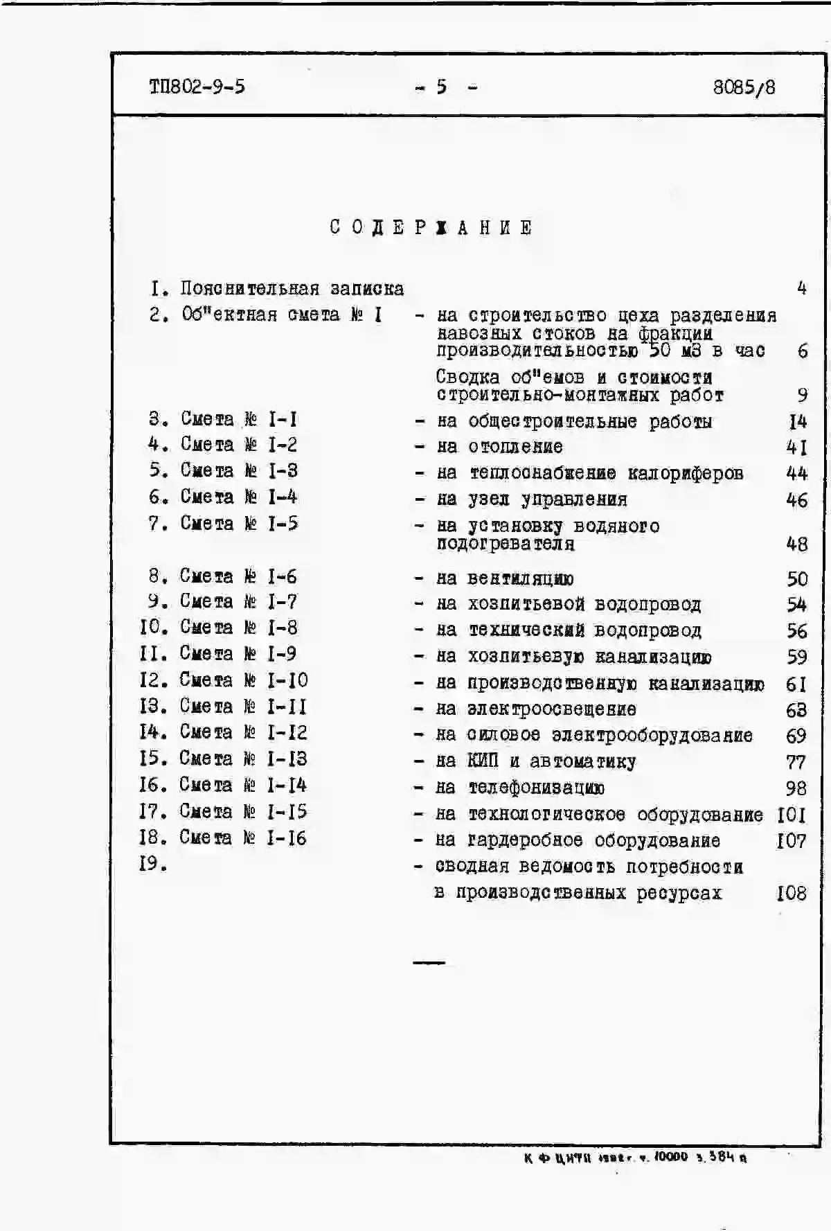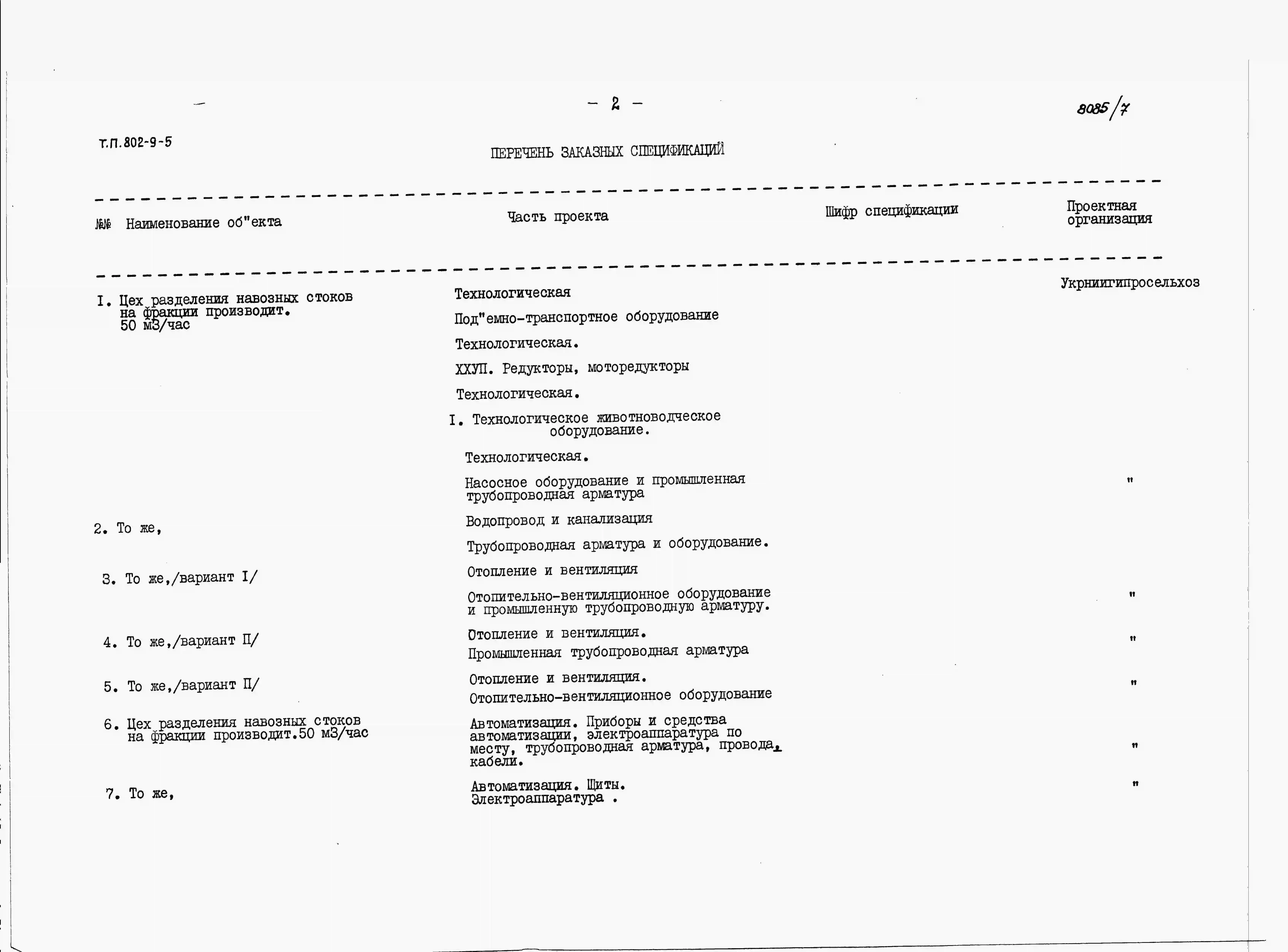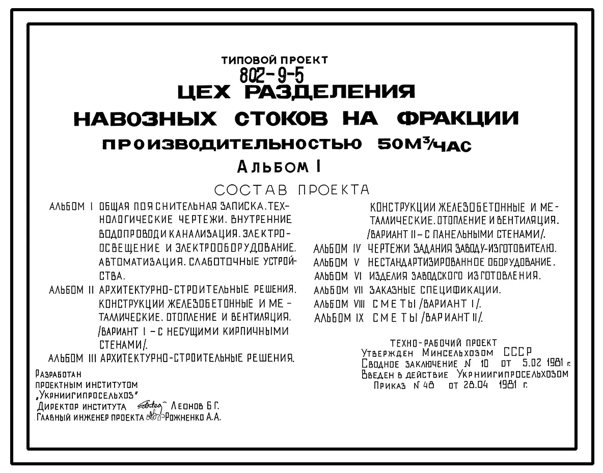 Типовой проект 802-9-5 Цех разделения навозных стоков на фракции производительностью 50 м?/ч