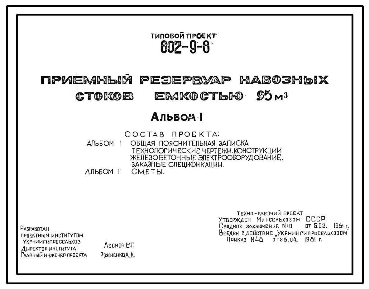 Типовой проект 802-9-8 Приемный резервуар навозных стоков емкостью 95 м.куб.