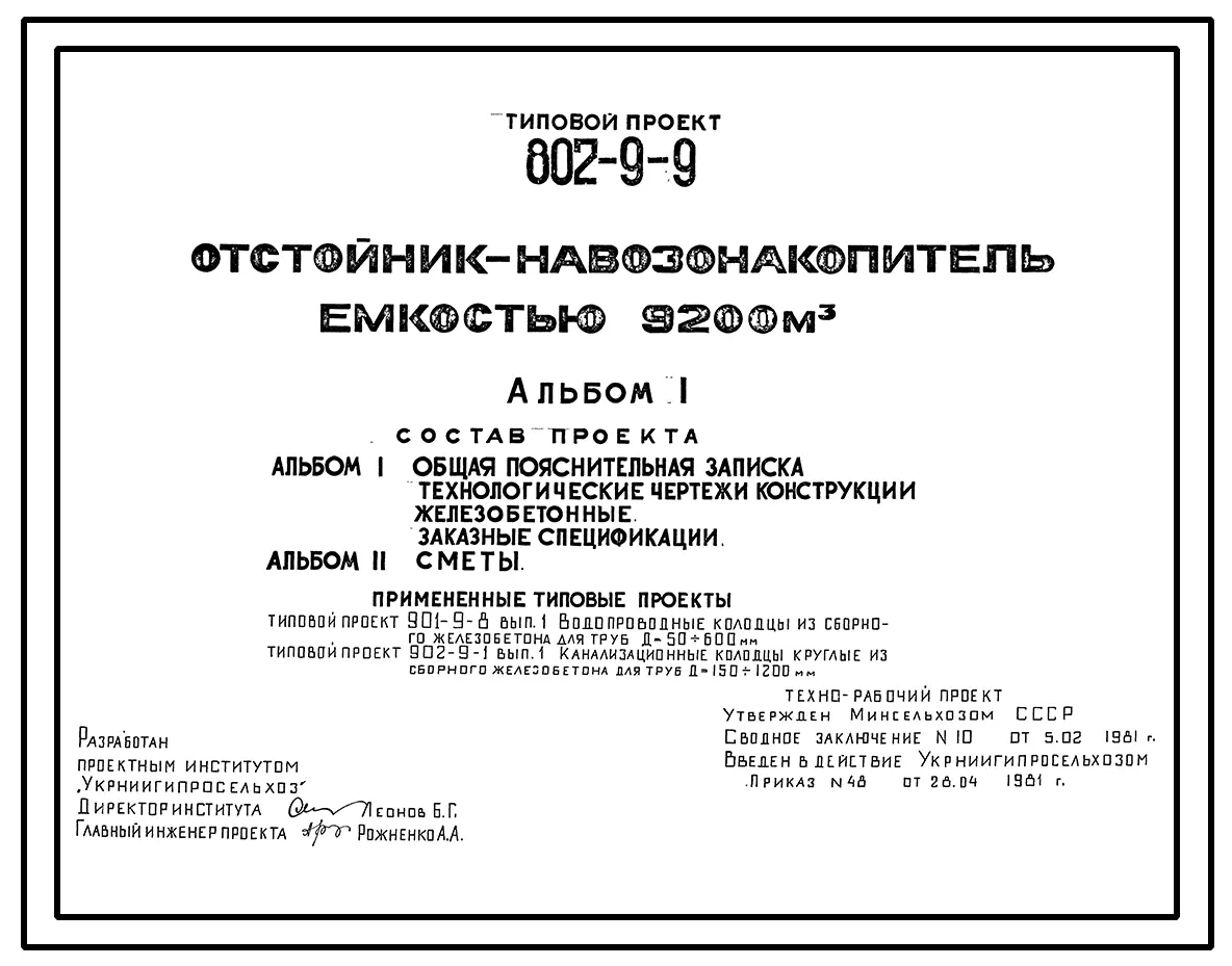 Типовой проект 802-9-9 Отстойник-навозонакопитель емкостью 9200 м2