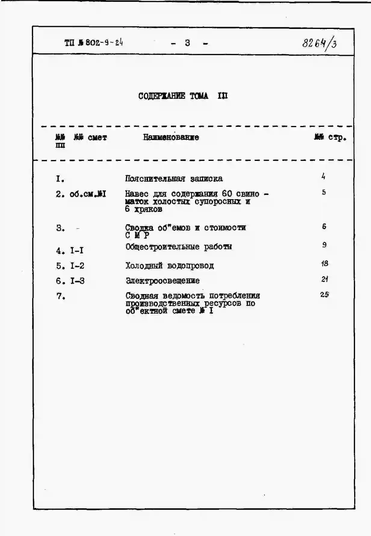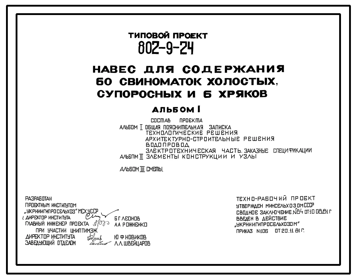 Типовой проект 802-9-24 Навес для содержания 60 свиноматок холостых, супоросных и 6 хряков