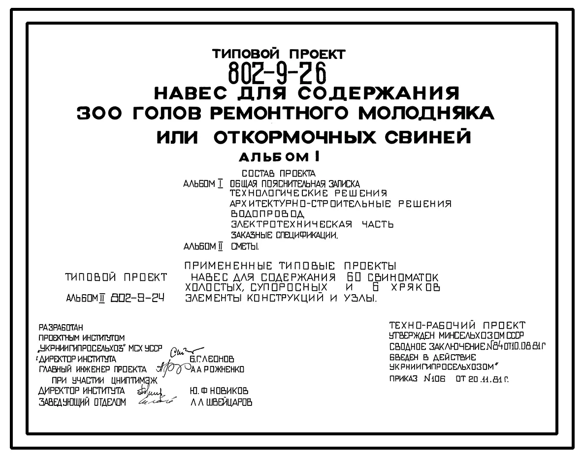 Типовой проект 802-9-26 Навес для содержания 300 голов ремонтного молодняка или откормочных свиней