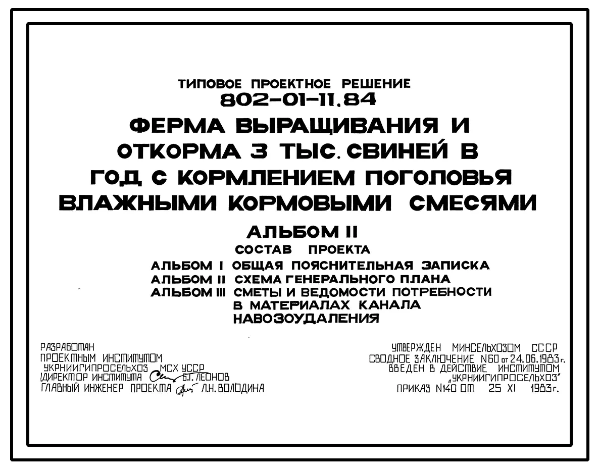 Типовой проект 802-01-11.84 Ферма выращивания и откорма 3 тыс. свиней в год с кормлением поголовья влажными кормовыми смесями
