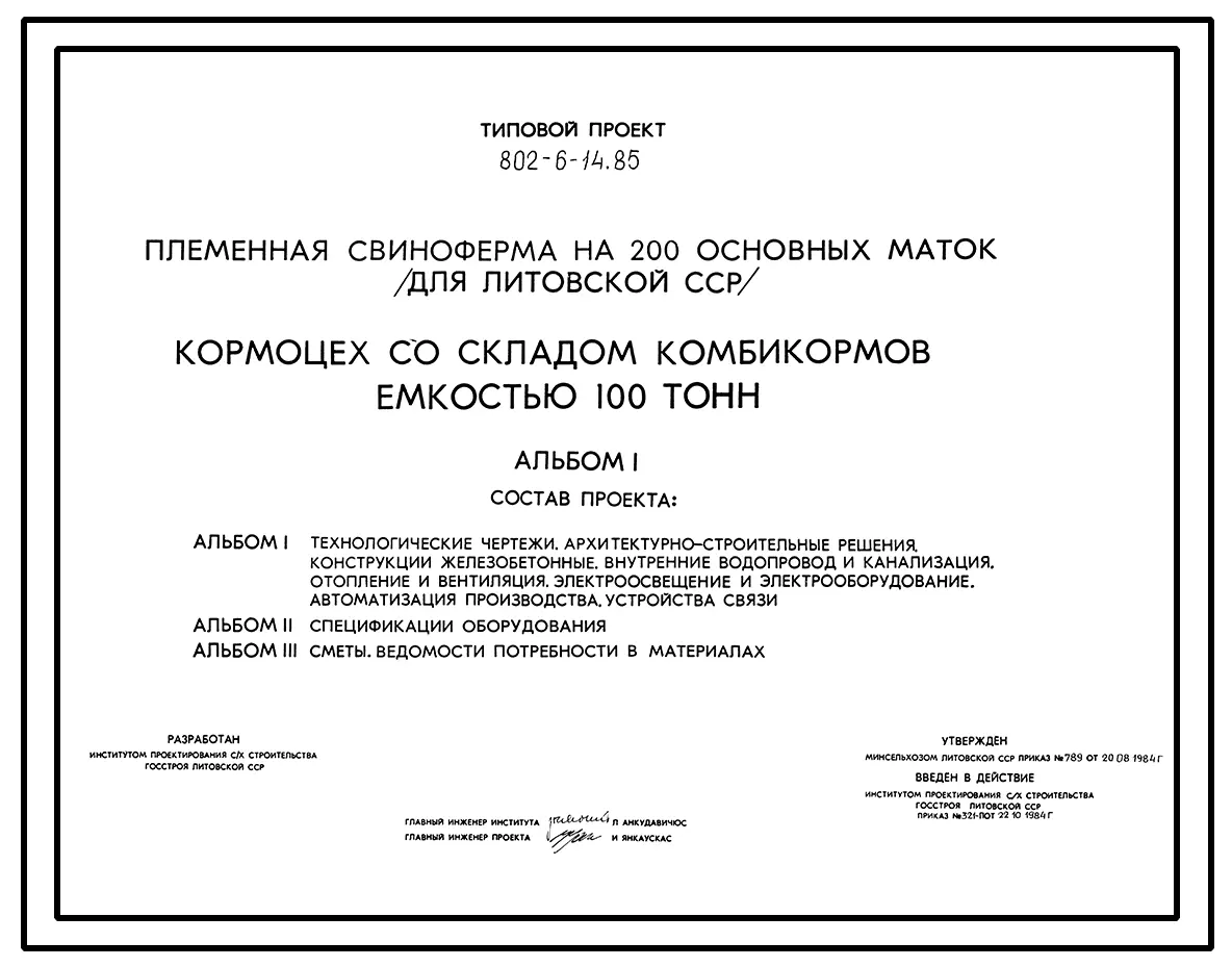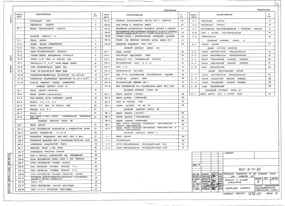 Типовой проект 802-6-14.85 Кормоцех со складом комбикормов емкостью 100 т.