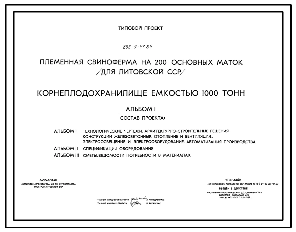 Типовой проект 802-9-47.85 Корнеплодохранилище емкостью 1000 т.