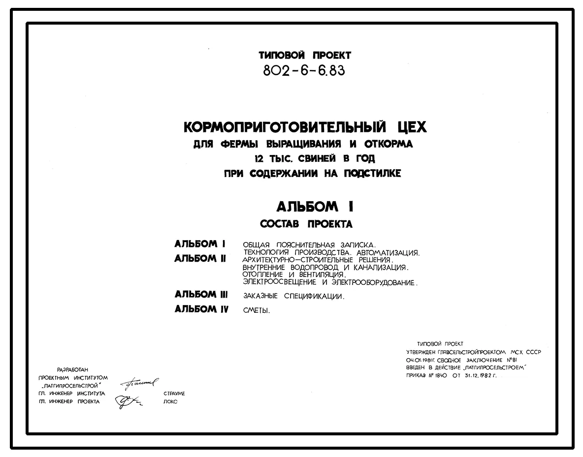 Типовой проект 802-6-6.83 Кормоприготовительный цех для фермы выращивания и откорма 12 тыс. свиней в год при содержании на подстилке