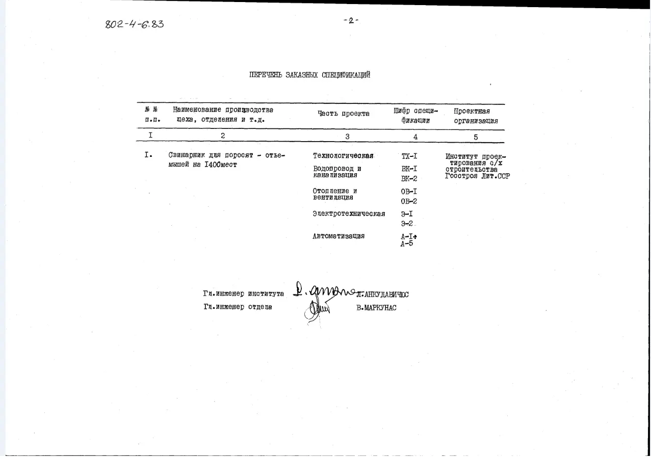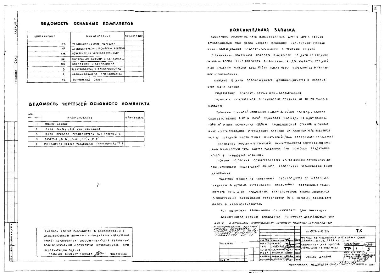 Типовой проект 802-4-6.83 Свинарник для поросят-отъемышей на 1400 мест