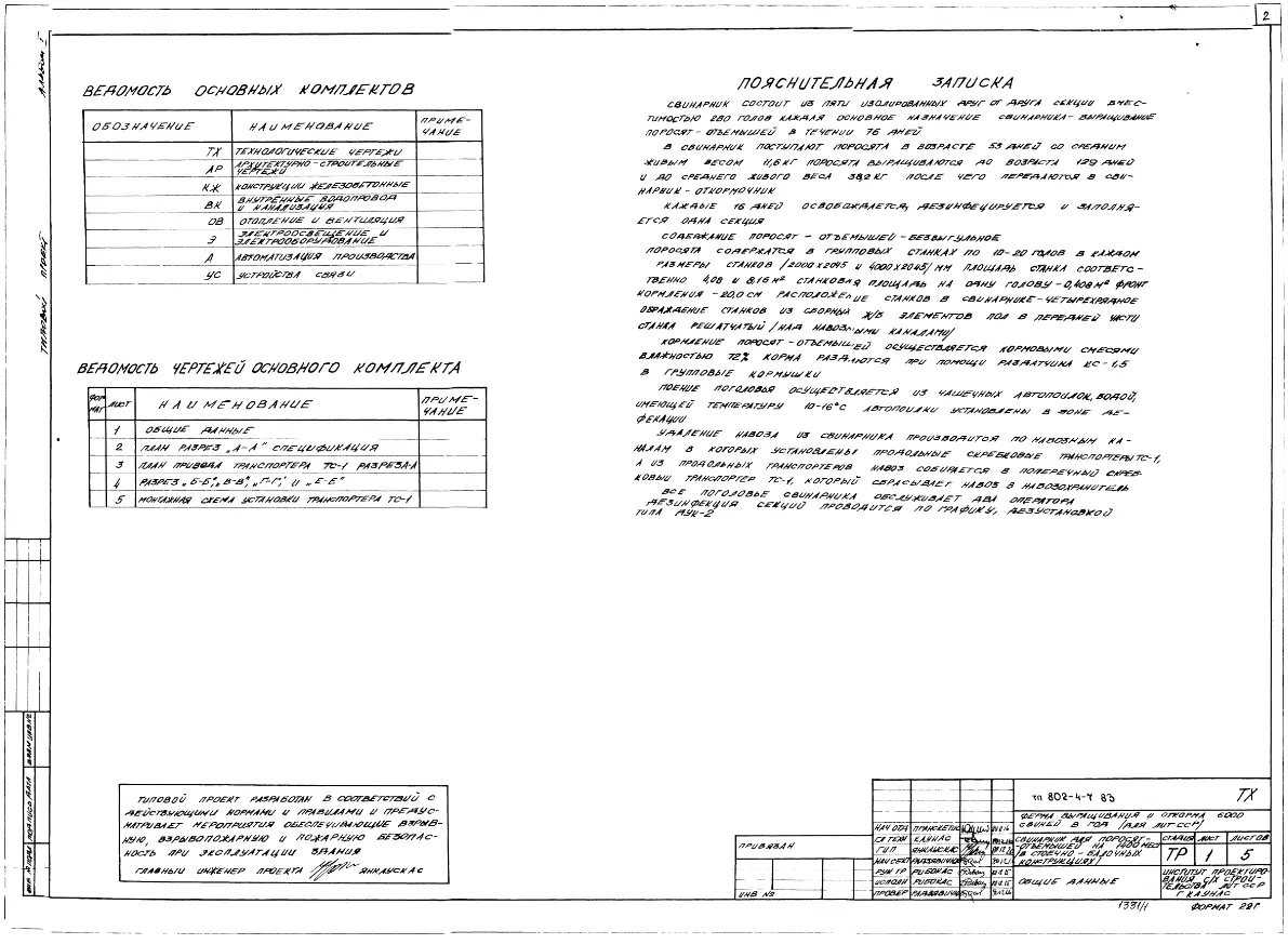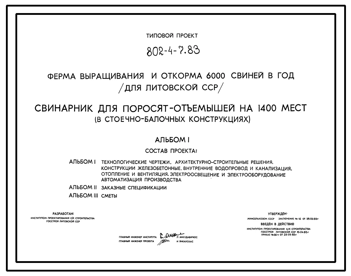 Типовой проект 802-4-7.83 Свинарник для поросят-отъемышей на 1400 мест