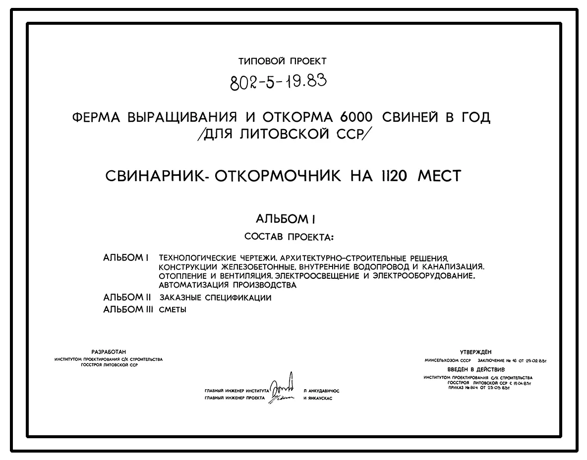 Типовой проект 802-5-19.83 Свинарник-откормочник на 1120 мест