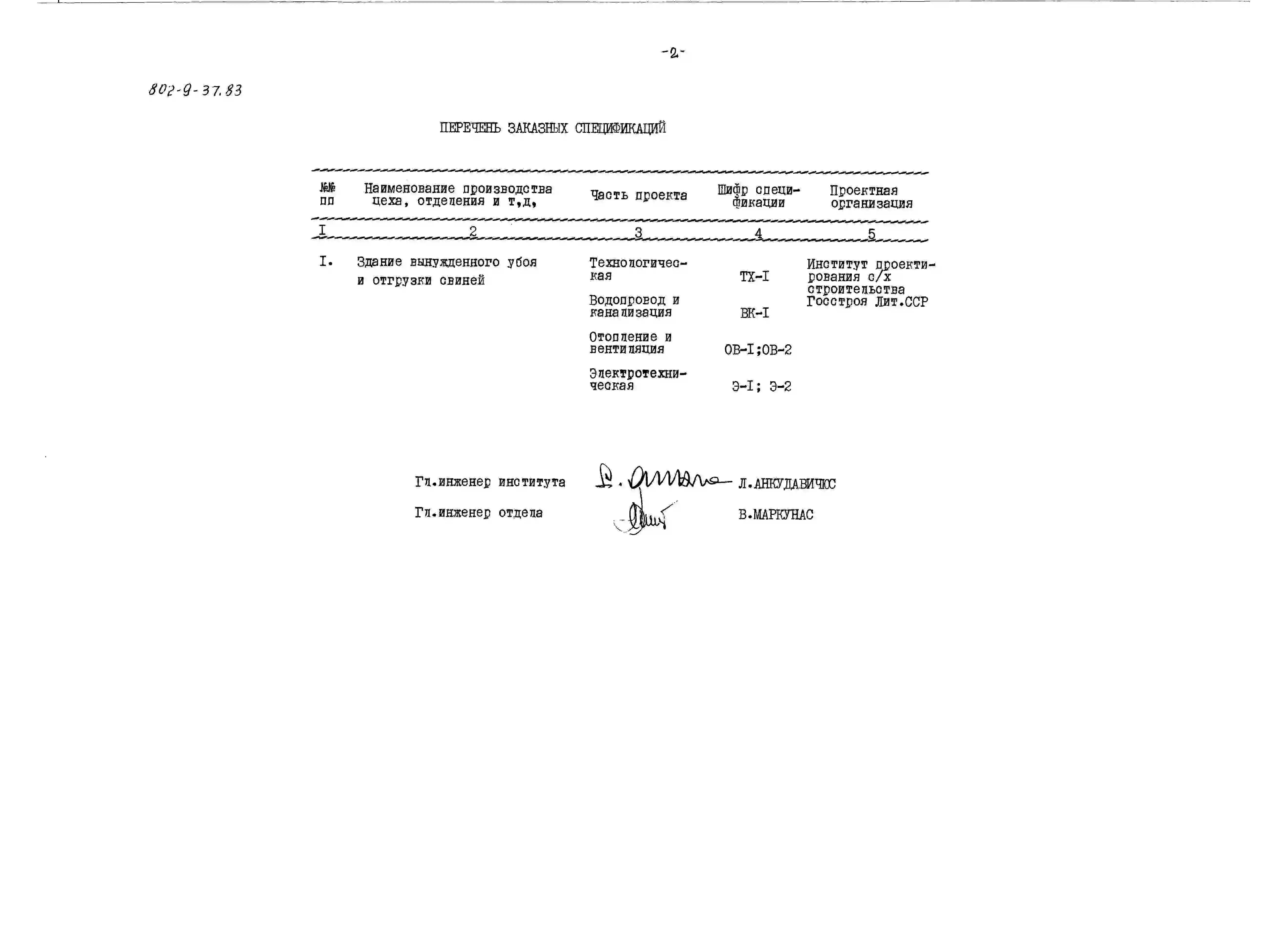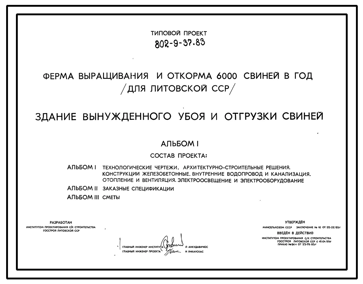Типовой проект 802-9-37.83 Здание вынужденного убоя и отгрузки свиней
