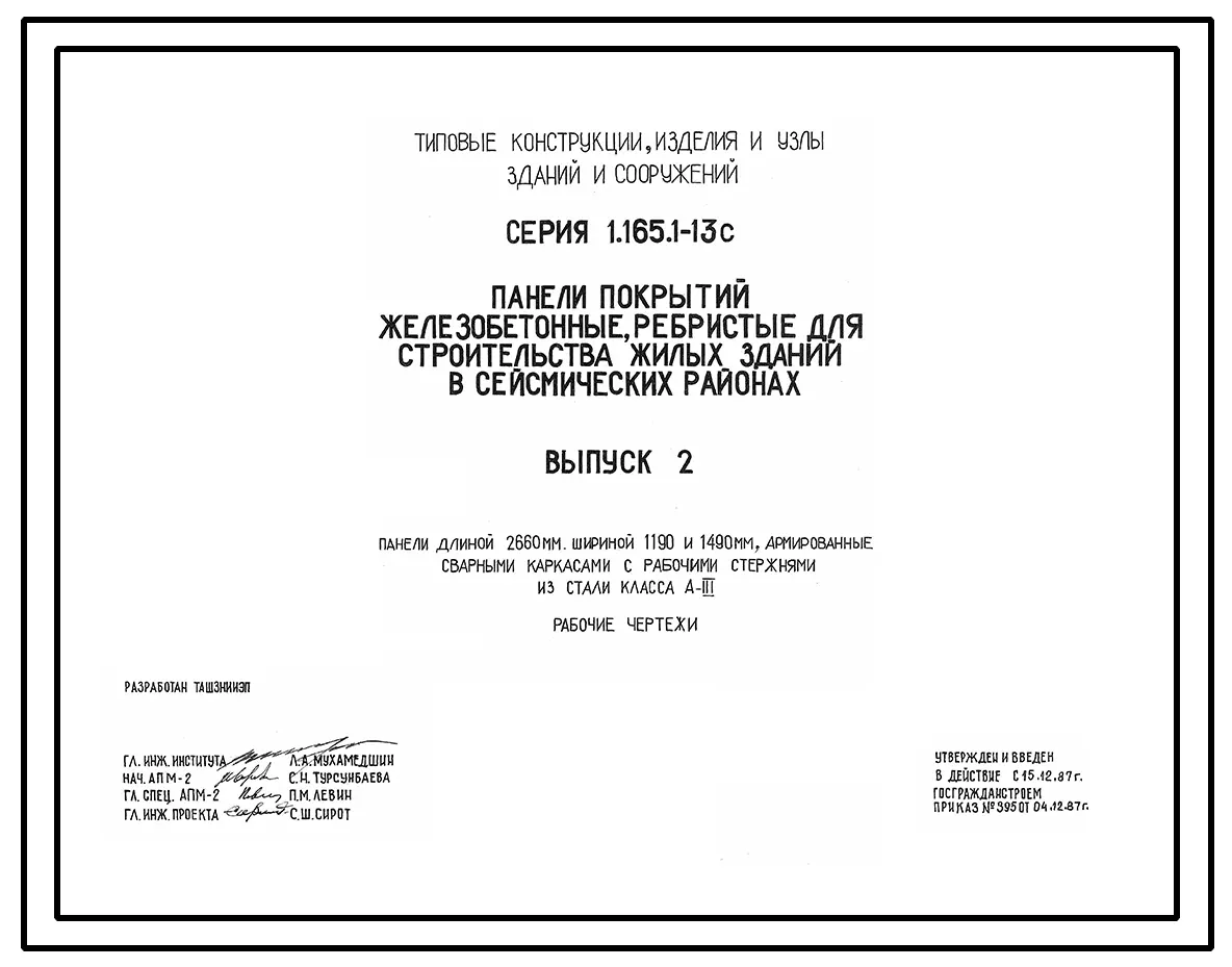 Серия 1.165.1-13с Панели покрытий железобетонные ребристые для строительства жилых зданий в сейсмических районах. Рабочие чертежи.