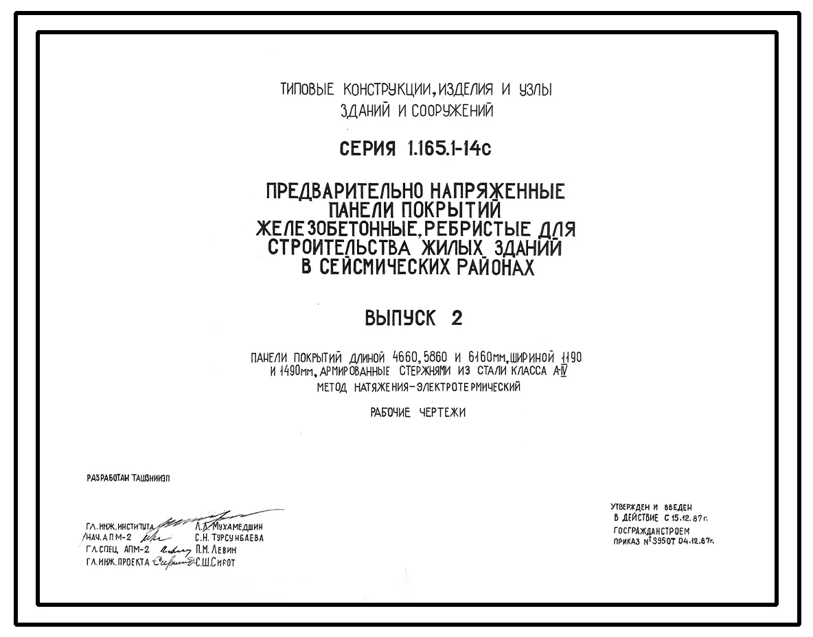 Серия 1.165.1-14c Предварительно напряженные панели покрытий железобетонные ребристые для строительства жилых зданий в сейсмических районах. Рабочие чертежи.