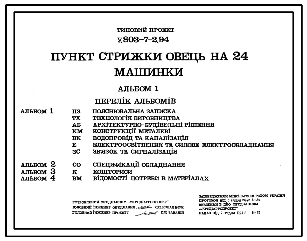 Типовой проект У.803-7-2.94 Пункт стрижки овец на 24 машинки (украинский язык)