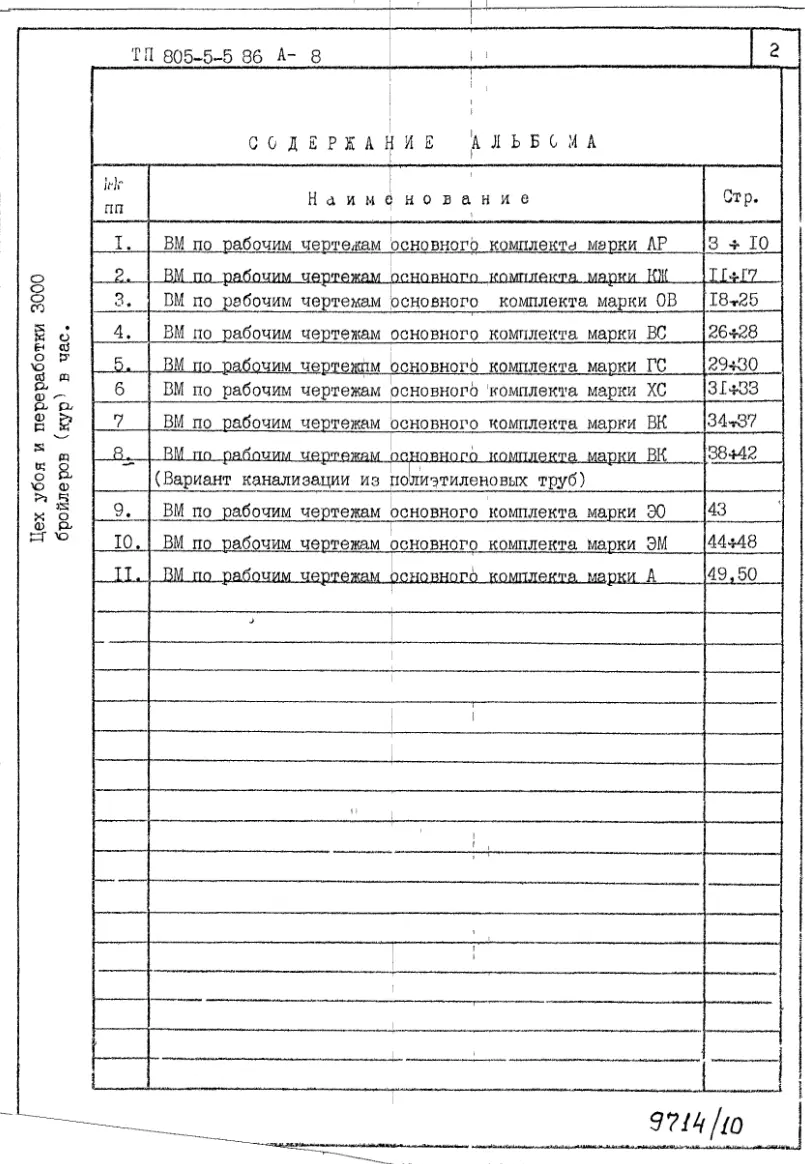 Типовой проект 805-5-5.86 Цех убоя и переработки 3000 бройлеров (кур) в час. Выпуск - 4580 т мяса птицы в год в потрошенном, фасованном и упакованном виде. Расчетная температура: -20, -30, -40°С. Стены - панельные легкобетонные. Покрытие - железобетонные