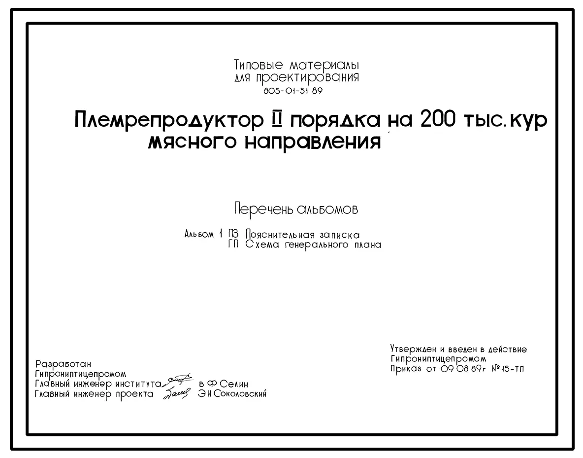 Типовой проект 805-01-51.89 ПЛЕМРЕПРОДУКТОР П 2 ПОРЯДКА НА 200 ТЫС. КУР МЯСНОГО НАПРАВЛЕНИЯ.
