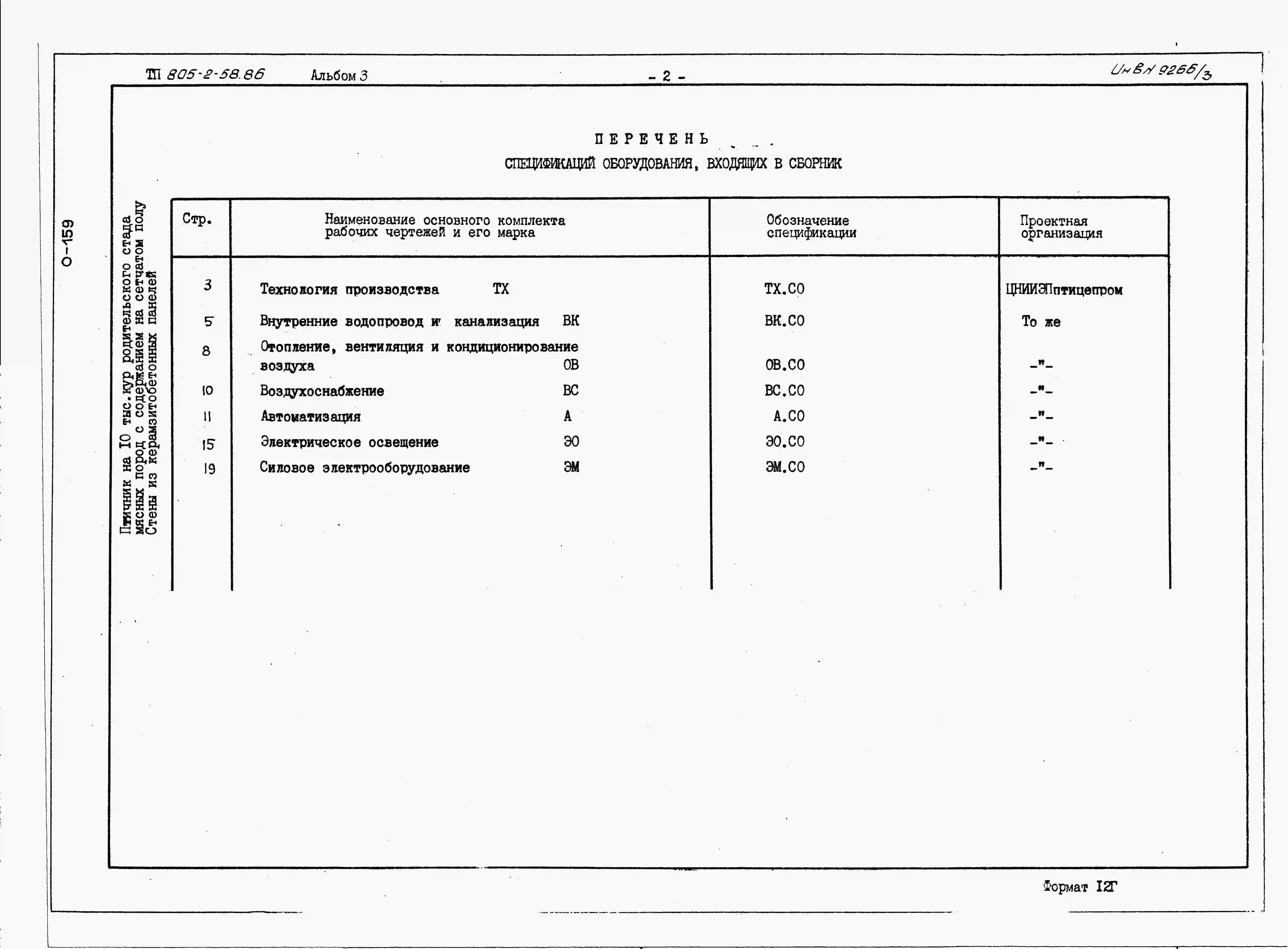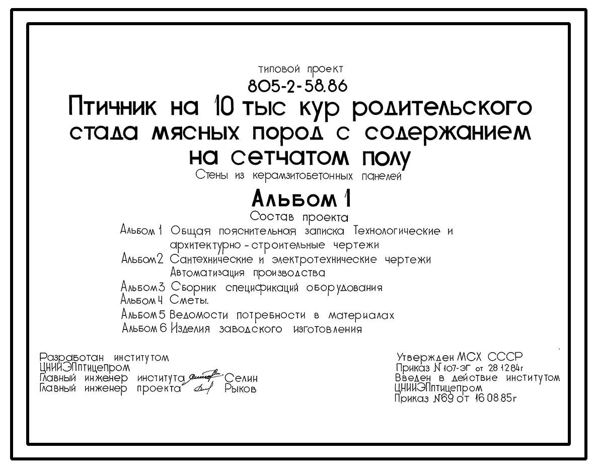 Типовой проект 805-2-58.86 Птичник на 10 тыс. кур родительского стада мясных пород с содержанием на сетчатом полу (стены из керамзитобетонных панелей)