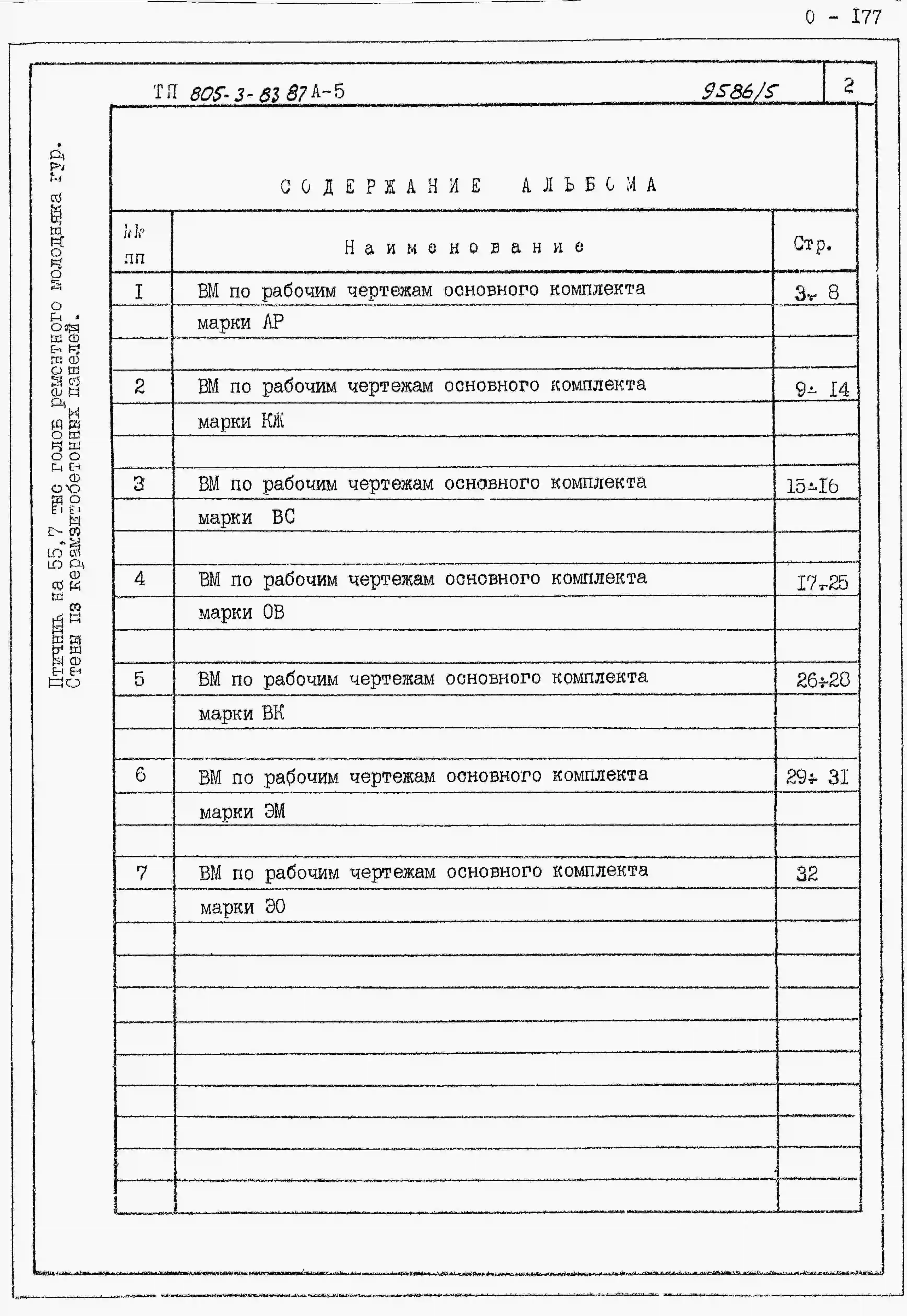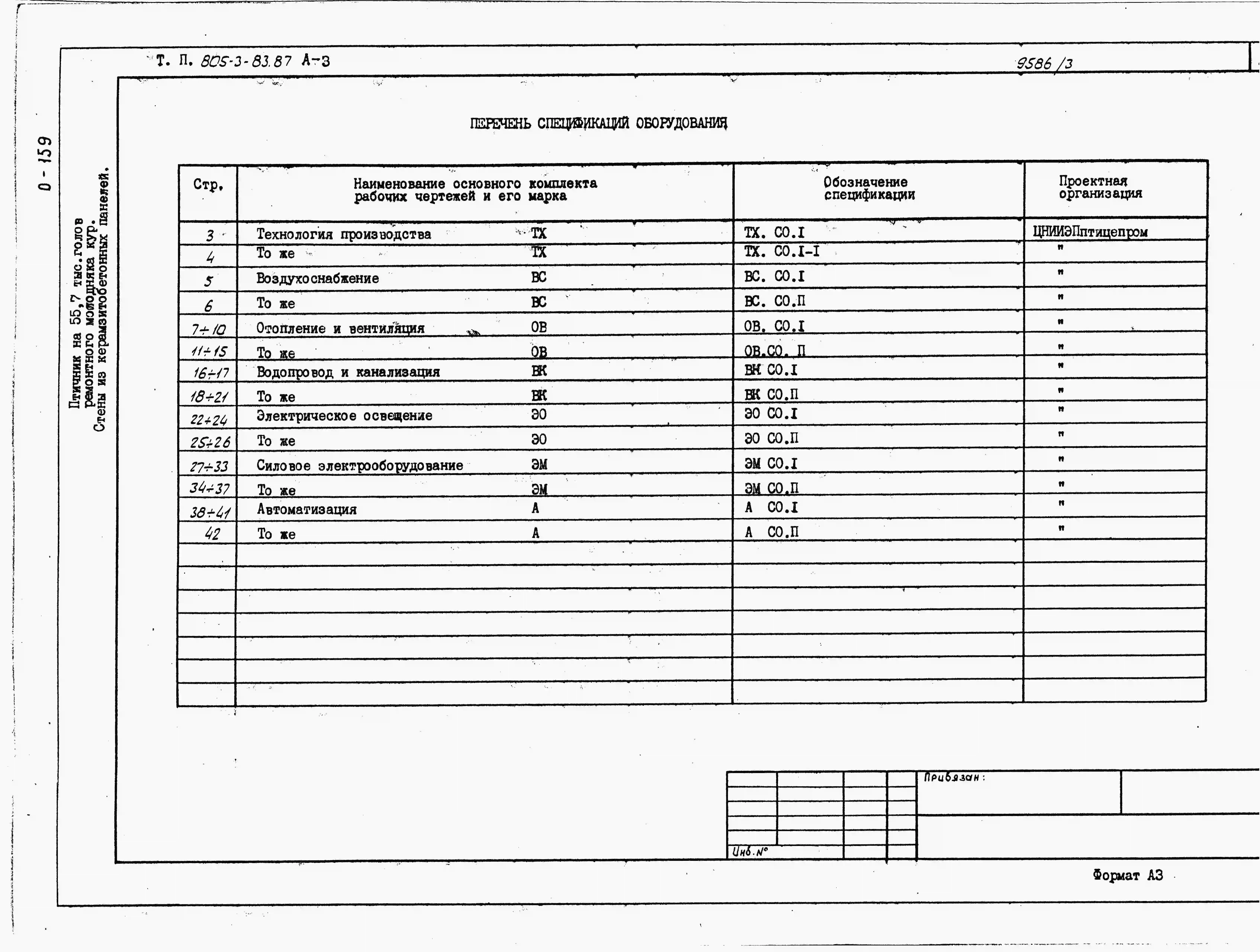 Типовой проект 805-3-83.87 Птичник на 55,7 тыс. голов ремонтного молодняка кур. Содержание птицы в клеточных батареях БКМ-3В. Стены из легкобетонных панелей и кирпича.