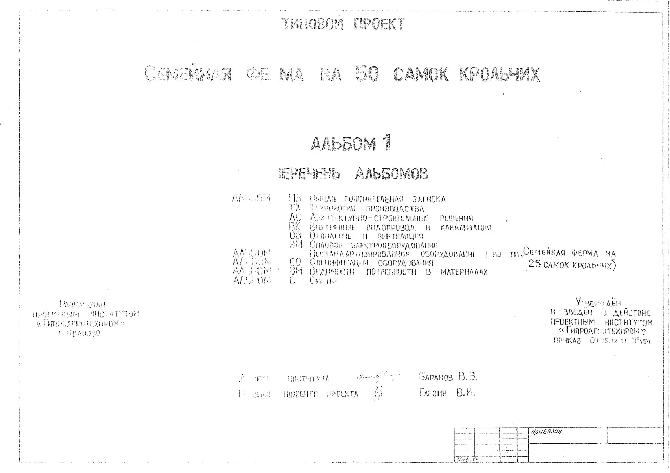 Шифр 5460/2 Семейная ферма на 50 самок крольчих. Предназначена для производства шкурок и мяса кроликов в личных хозяйствах граждан. Ферма представляет собой здание с помещением для содержания кроликов, кормокухней, инвентарной и погребом. Кролики ра