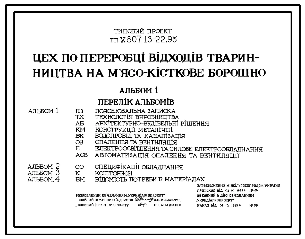 Типовой проект У.807-13-22.94 Цех по переработке отходов животноводства на мясокостную муку