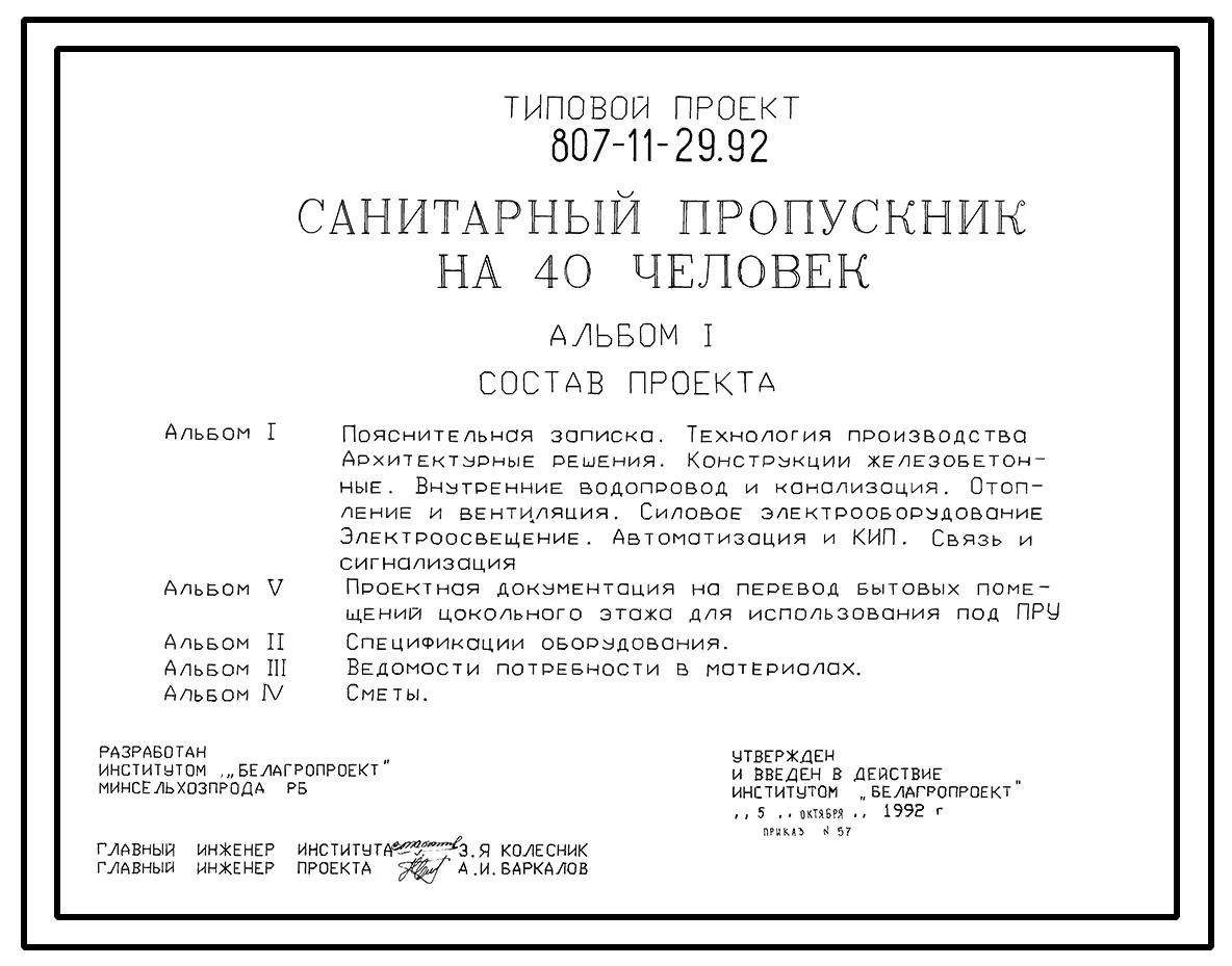 Типовой проект 807-11-29.92 Санитарный пропускник на 40 человек