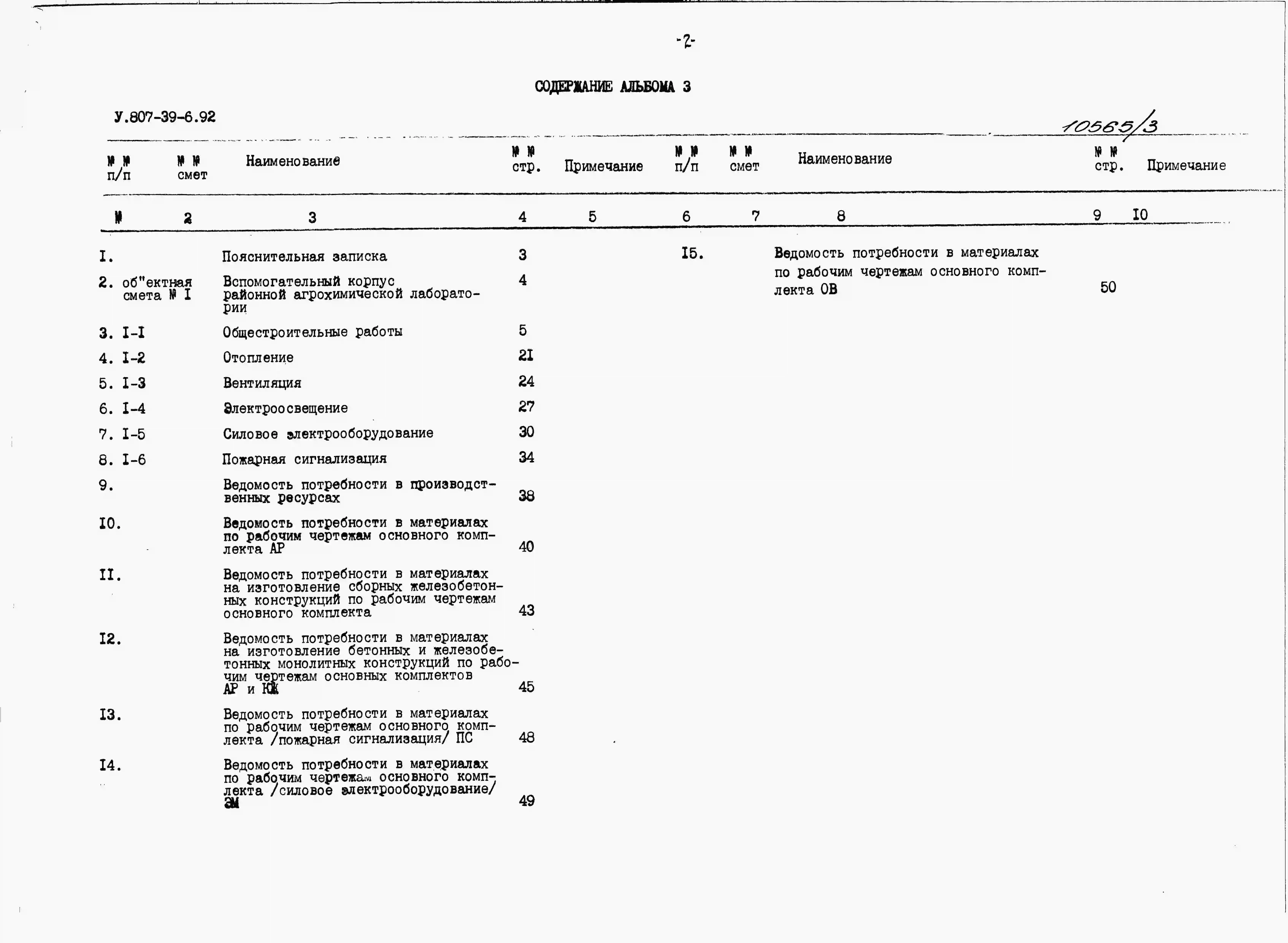 Типовой проект У.807-39-6.92 Вспомогательный корпус районной агрохимлаборатории