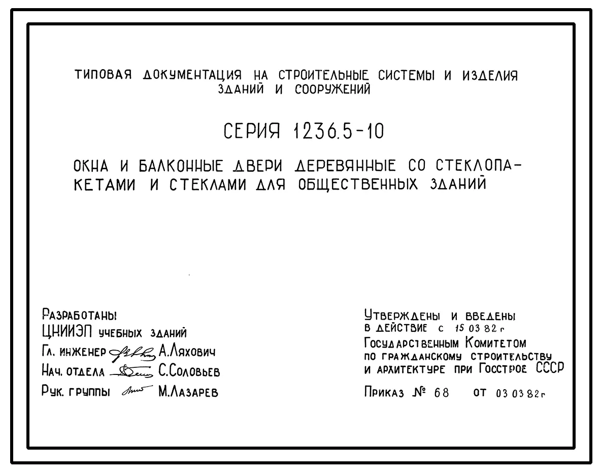 Серия 1.236.5-10 Окна и балконные двери деревянные со стеклопакетами и стеклами для общественных зданий. Рабочие чертежи.