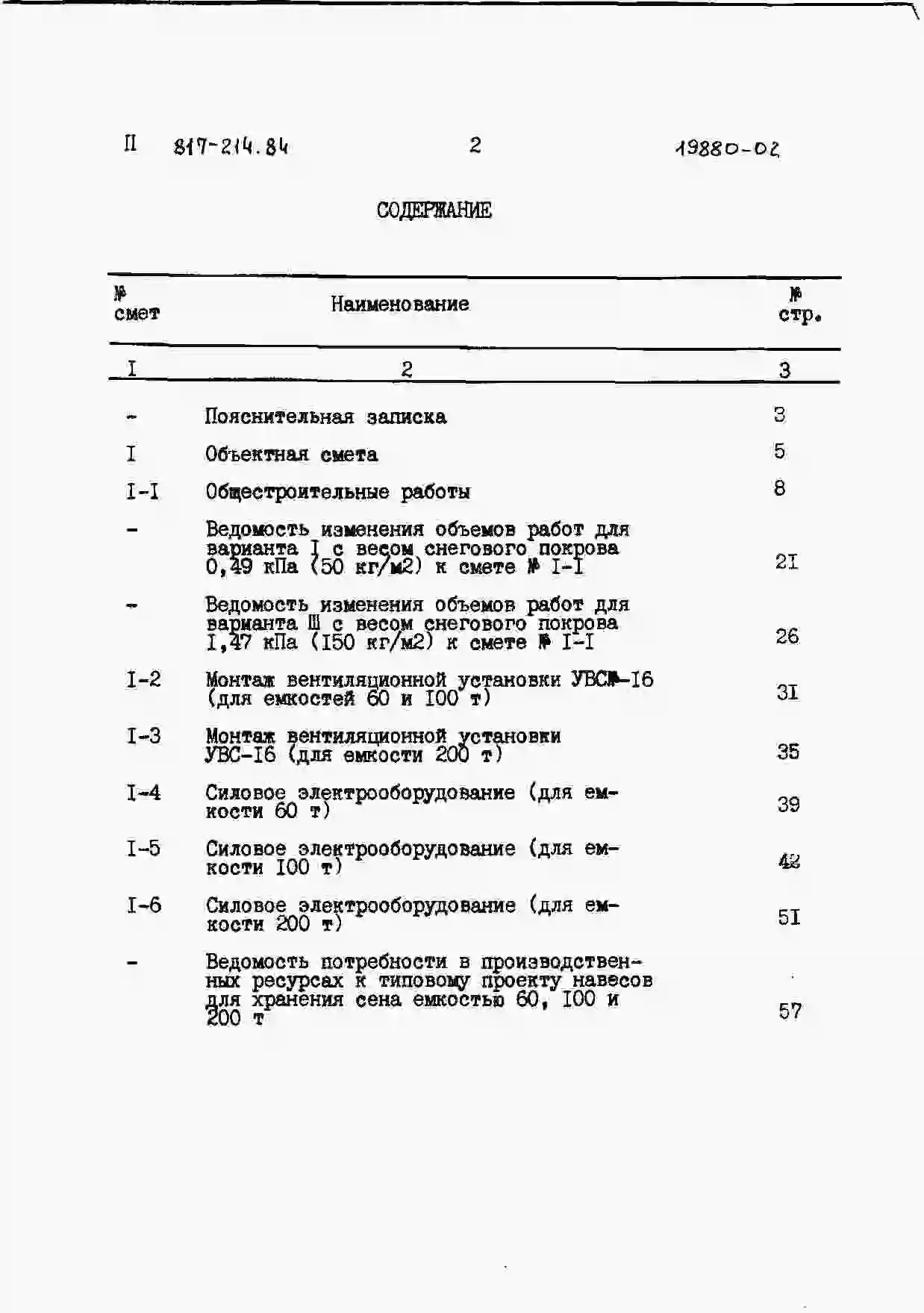 Типовой проект 817-214.84 Навесы для хранения сена емкостью 60, 100, 200 т. Размеры навесов: 12x12, 12x16; 12x36 м соответственно. Расчетная температура: -40°С. Покрытие - асбестоцементные листы по деревянным прогонам и рамам