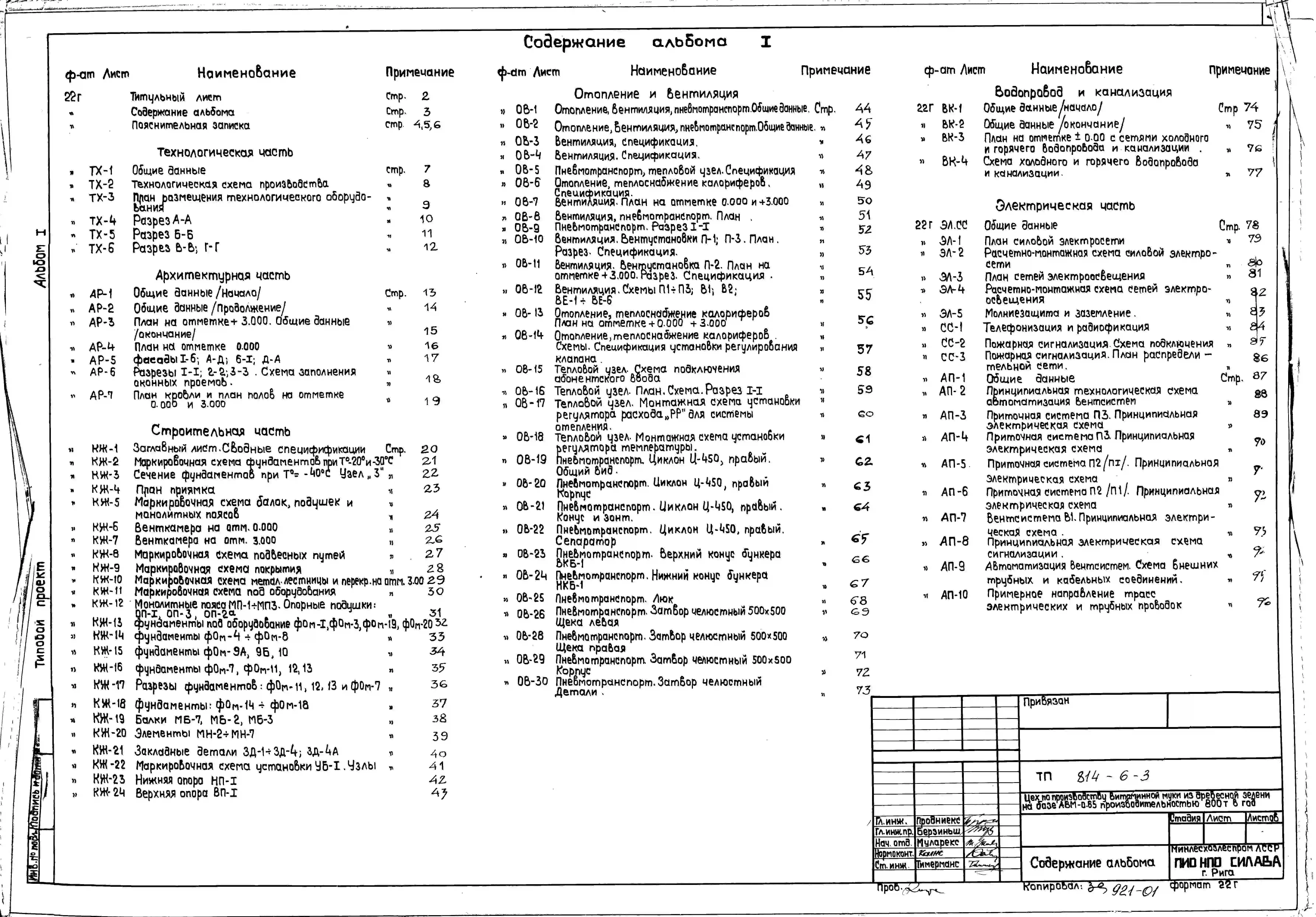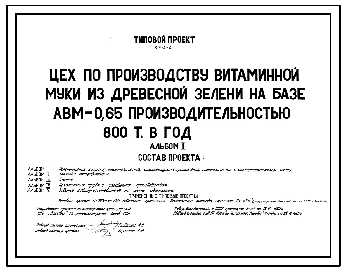 Типовой проект 814-6-3 Цех по производству витаминной муки из древесной зелени на базе АВМ-0,65 производительностью 800 т в год