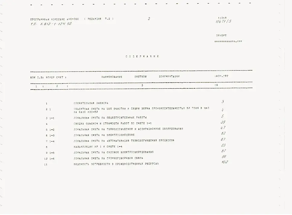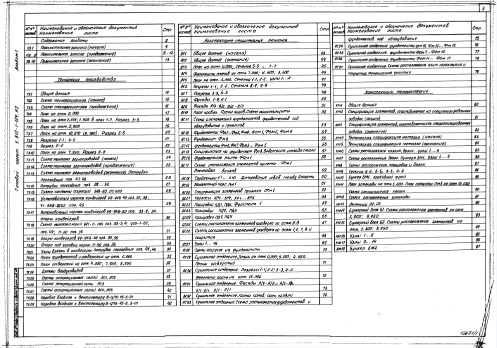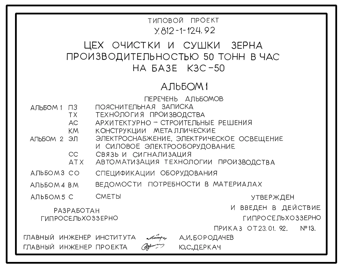 Типовой проект У.812-1-124.92 Цех очистки и сушки зерна производительностью 50 тонн в час на базе КЗС-50