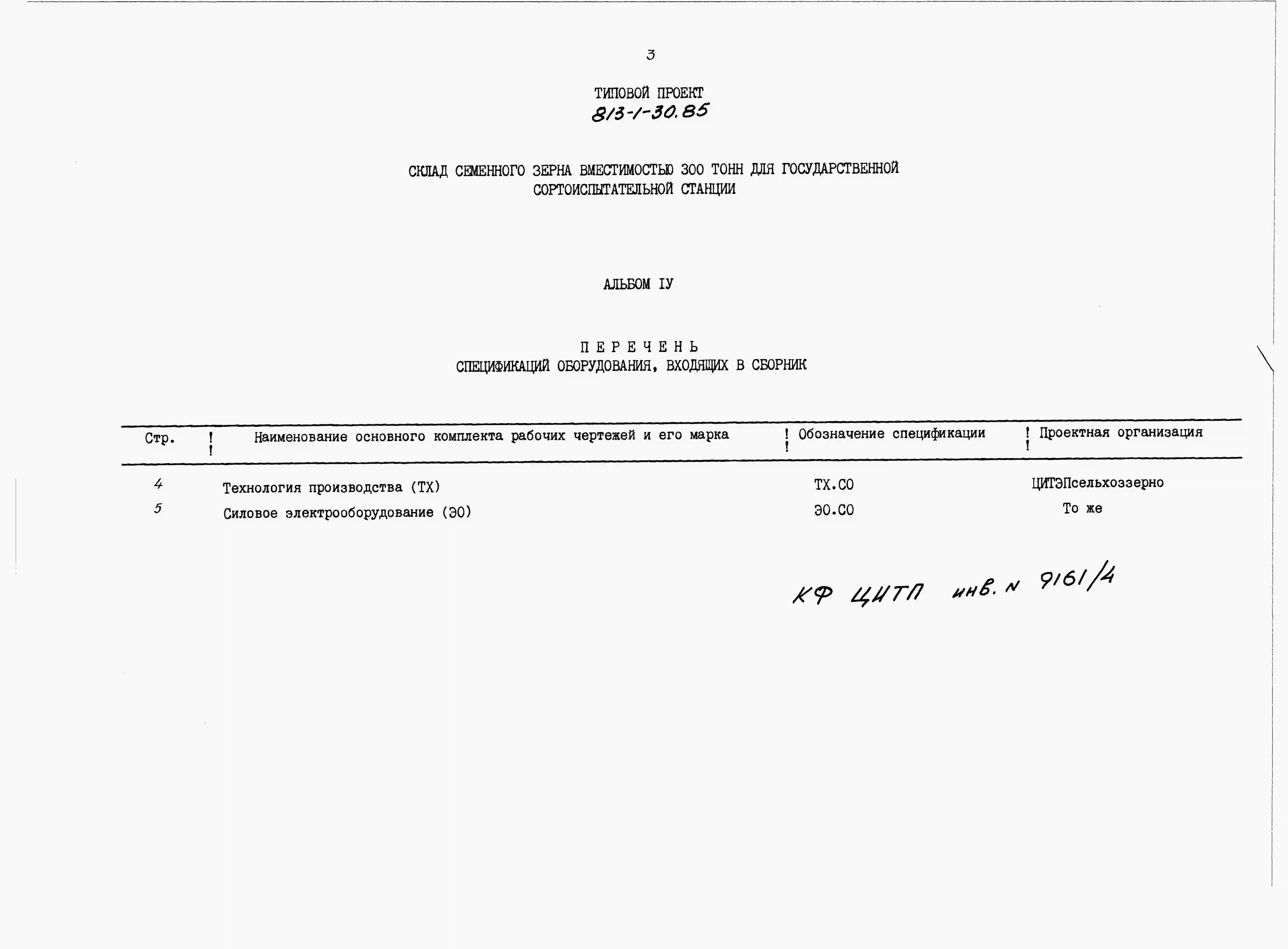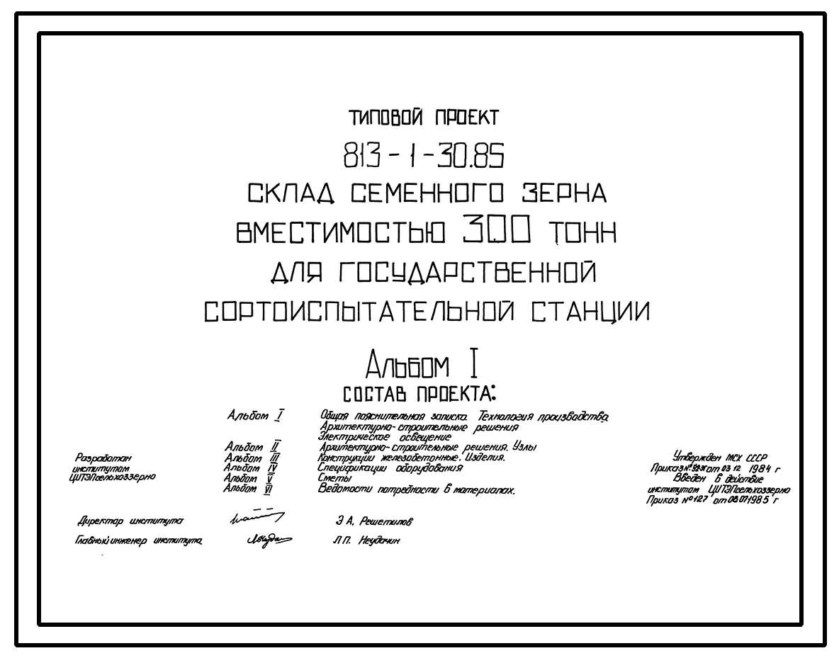 Типовой проект 813-1-30.85 Склад семенного зерна вместимостью 300 т (для государственной сортоиспытательной станции) Предназначен для хранения элиты семян зерновых и других культур, затаренных в тканевые мешки. Расчетная температура: -20. -30, -40°С. Стен