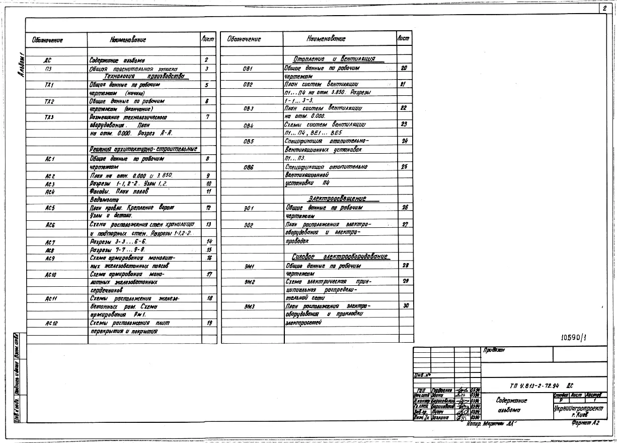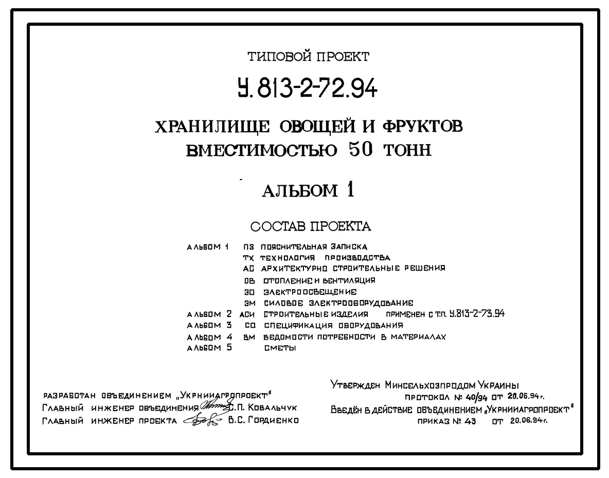 Типовой проект У.813-2-72.94 Хранилище овощей и фруктов вместимостью 50 тонн