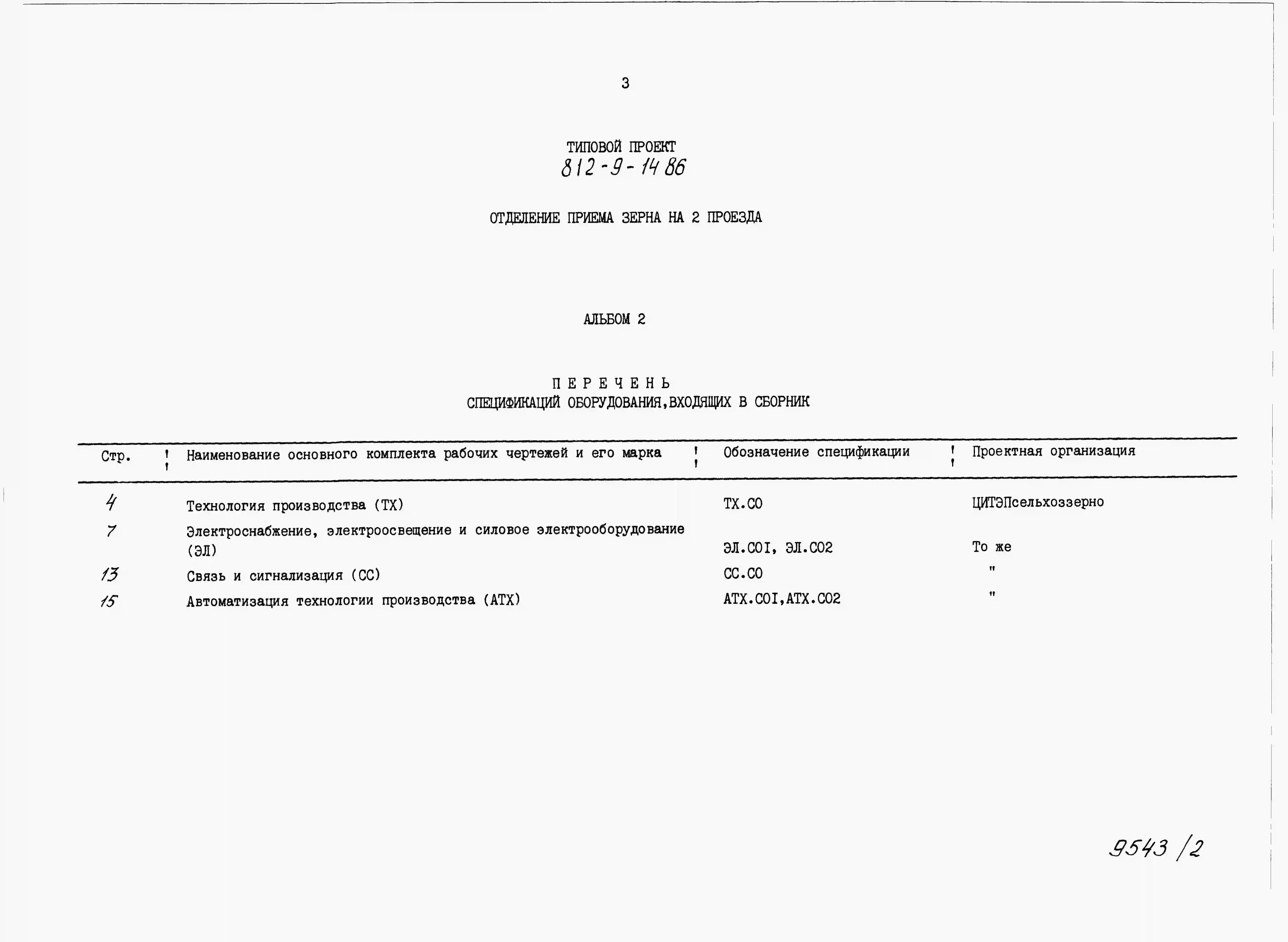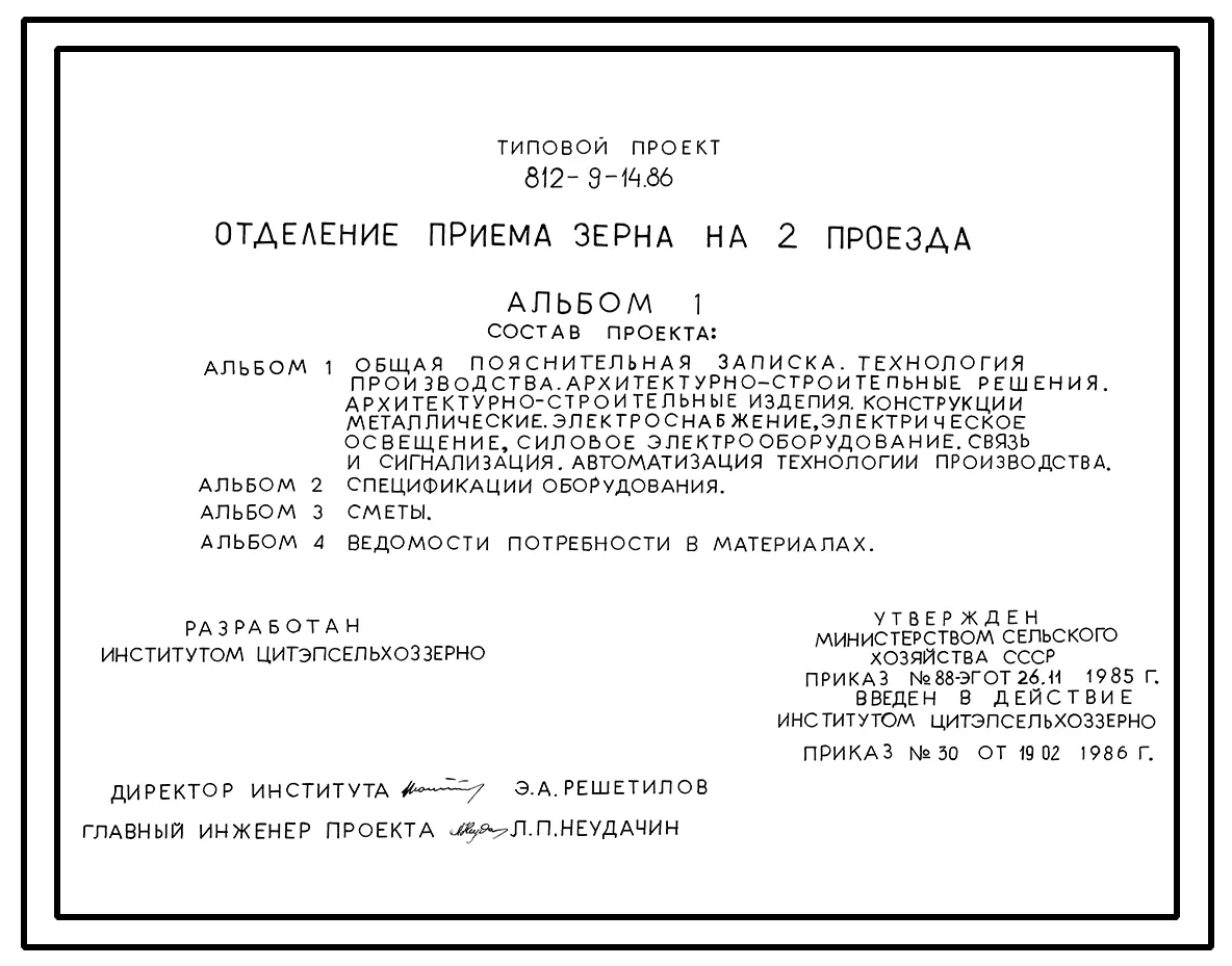 Типовой проект 812-9-14.86 Отделение приема зерна на 2 проезда