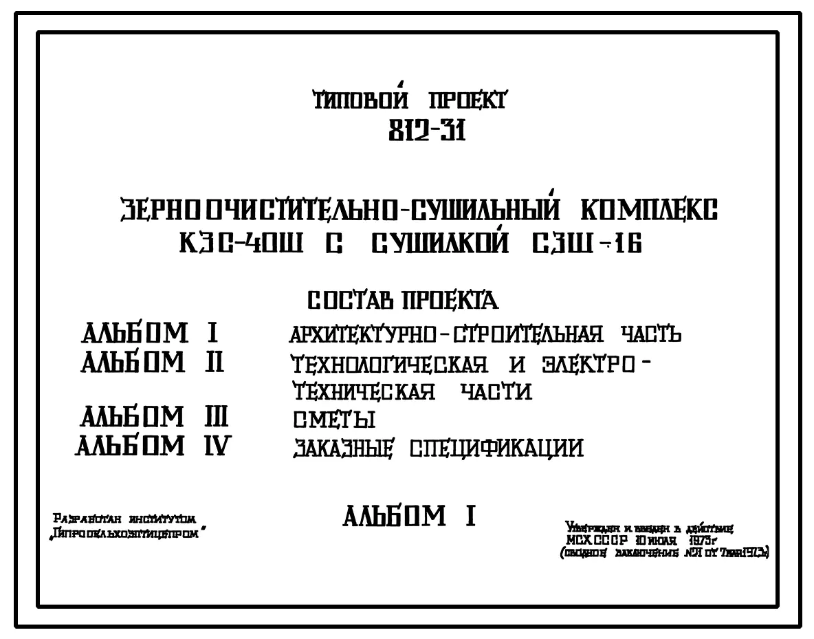 Типовой проект 812-31 Зерноочистительно-сушильный комплекс КЗС-40Ш с сушилкой СЗШ-16 производительностью 40 т/ч