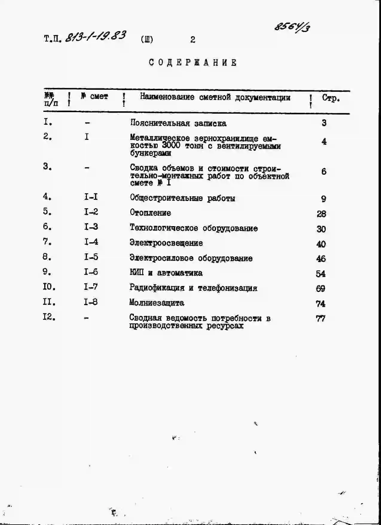 Типовой проект 813-1-19.83 Металлическое зернохранилище вместимостью 3600 т (с вентилируемыми бункерами)