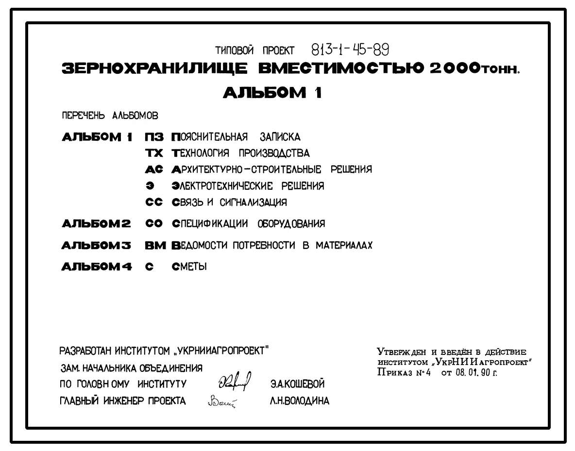 Типовой проект 813-1-45.89 Зернохранилище вместимостью 2000 т