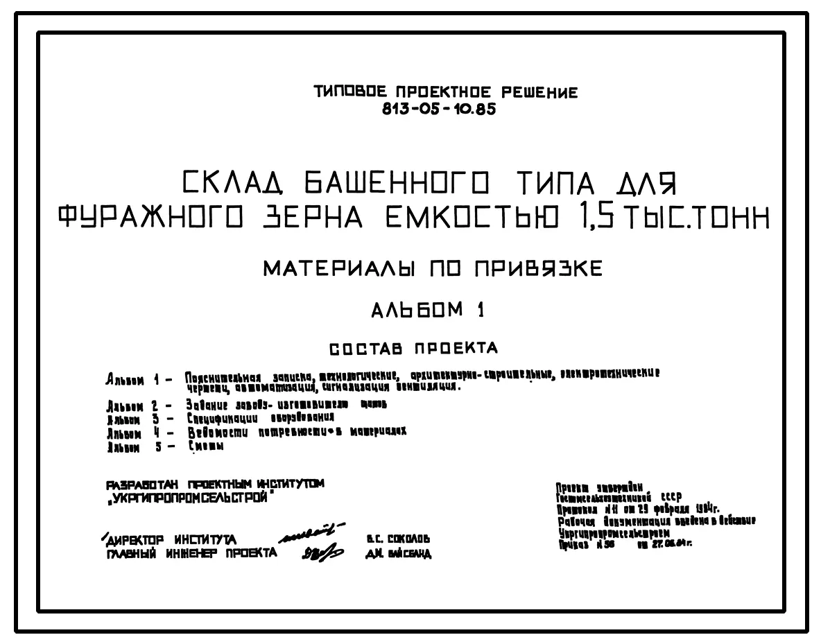 Типовой проект 813-05-10.85 Склад башенного типа для фуражного зерна емкостью 1500 т