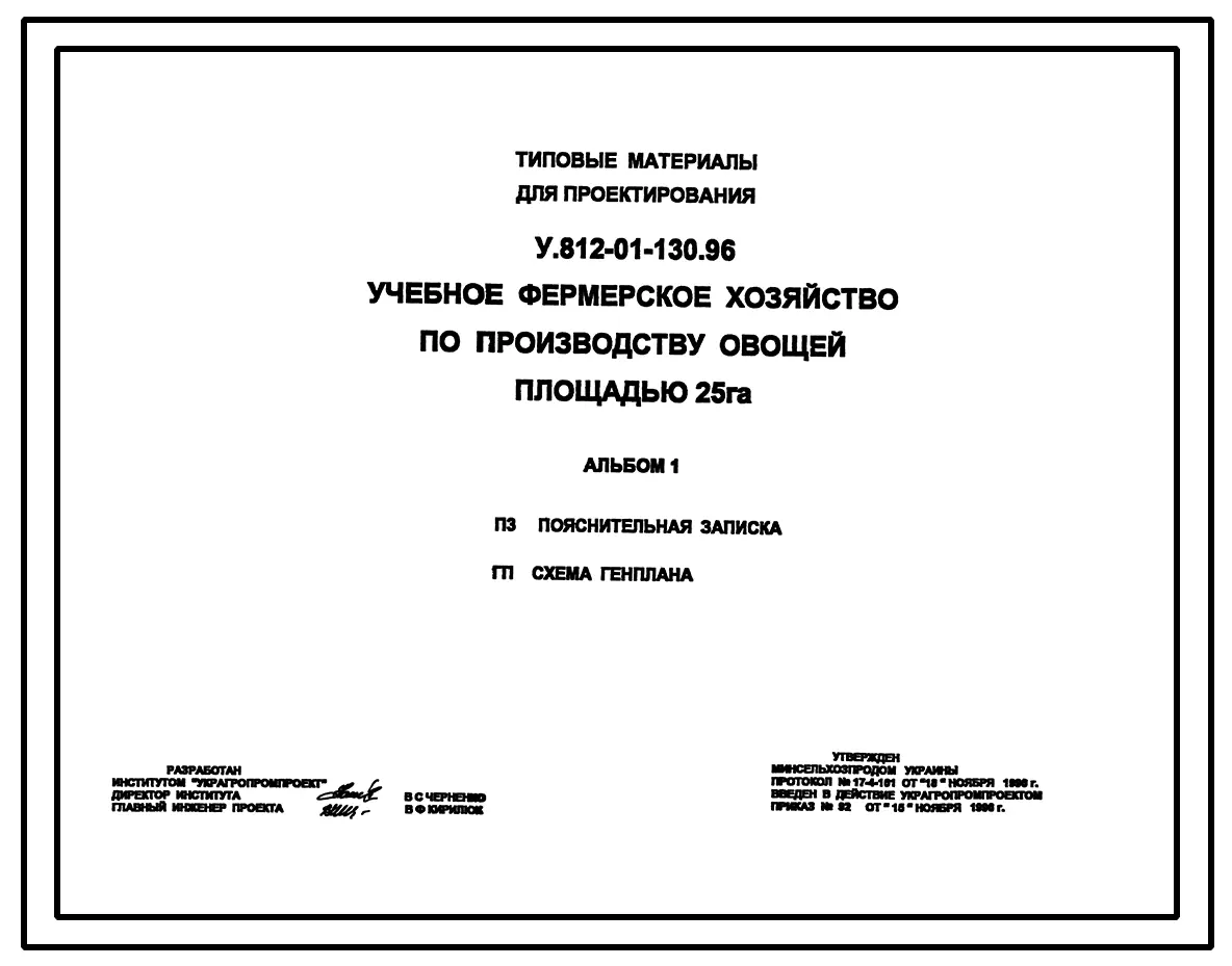 Типовой проект У.812-01-130.96 Учебное фермерское хозяйство для выращивания овощей на площади 25 Га (украинский язык)