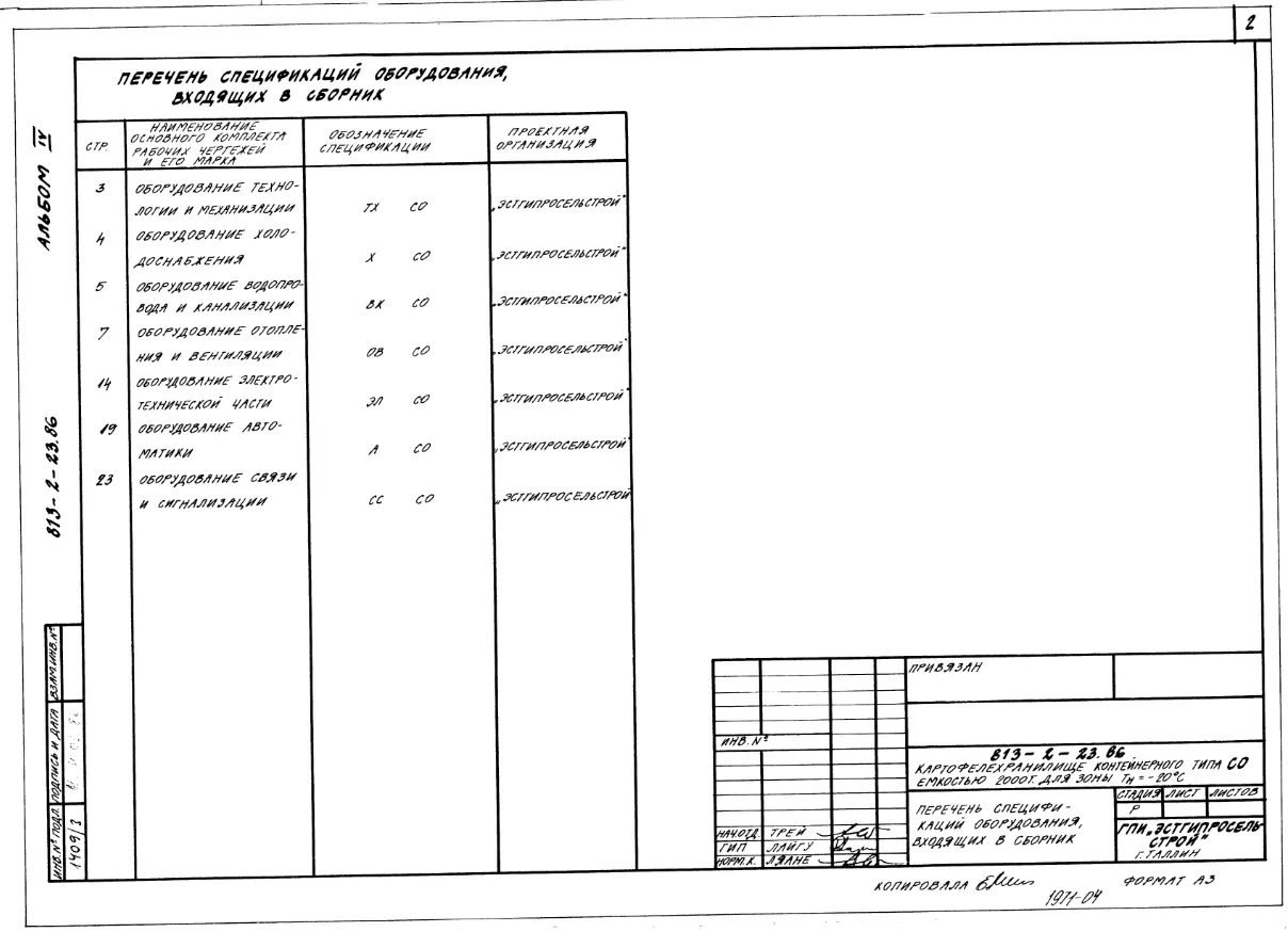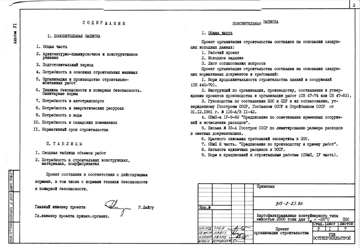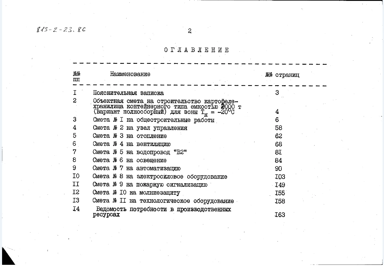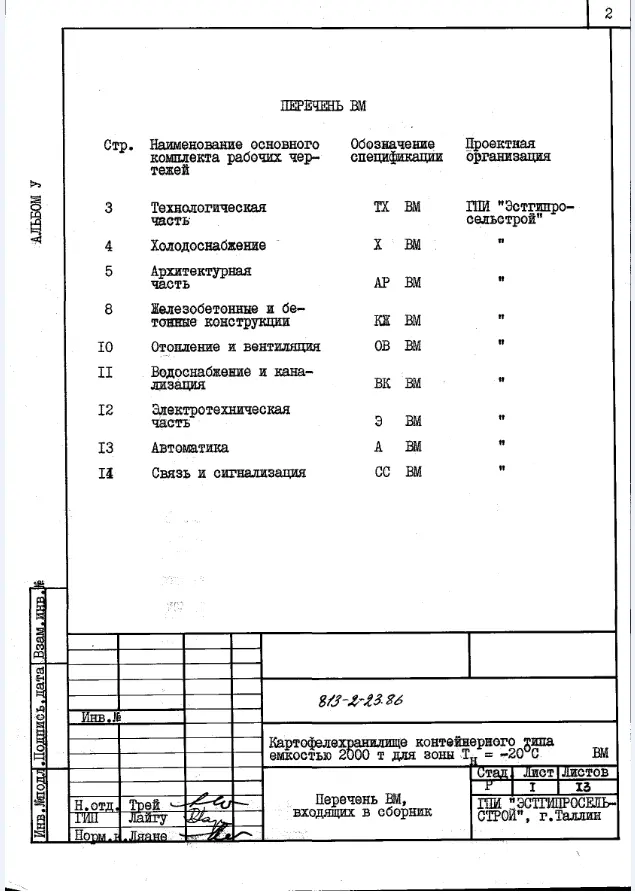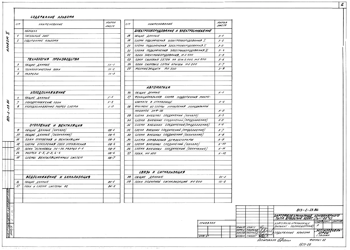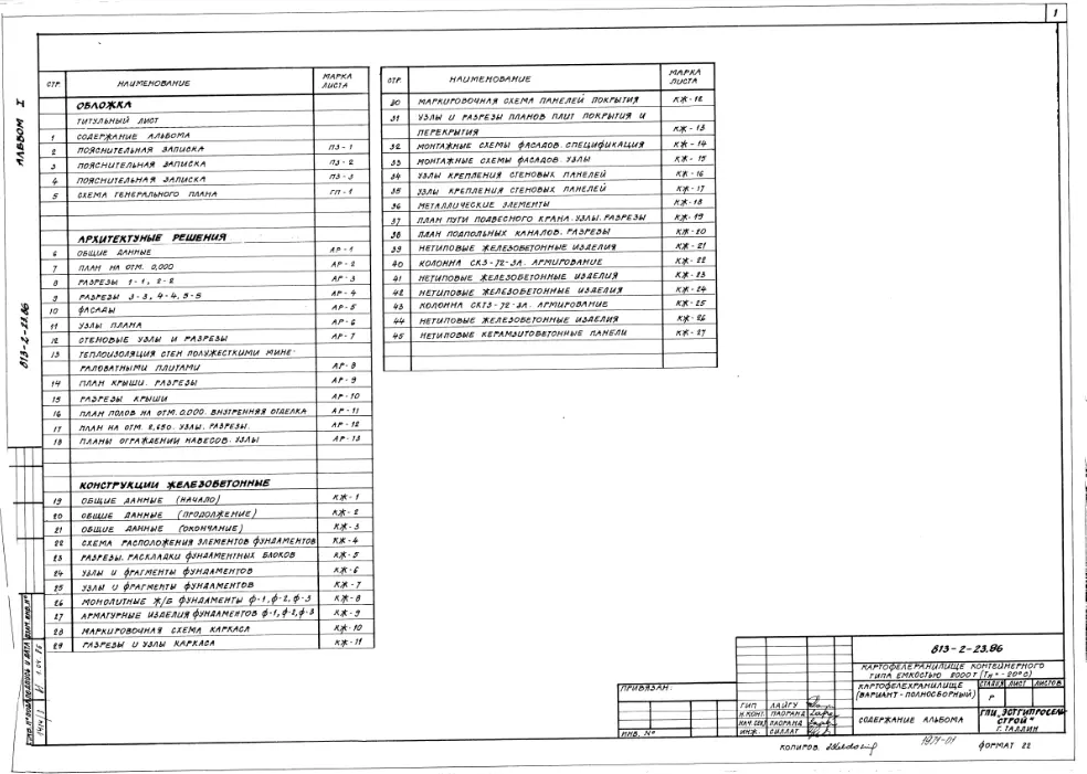 Типовой проект 813-2-23.86 Картофелехранилище контейнерного типа емкостью 2000 т (для зоны Тн=-20 0С)