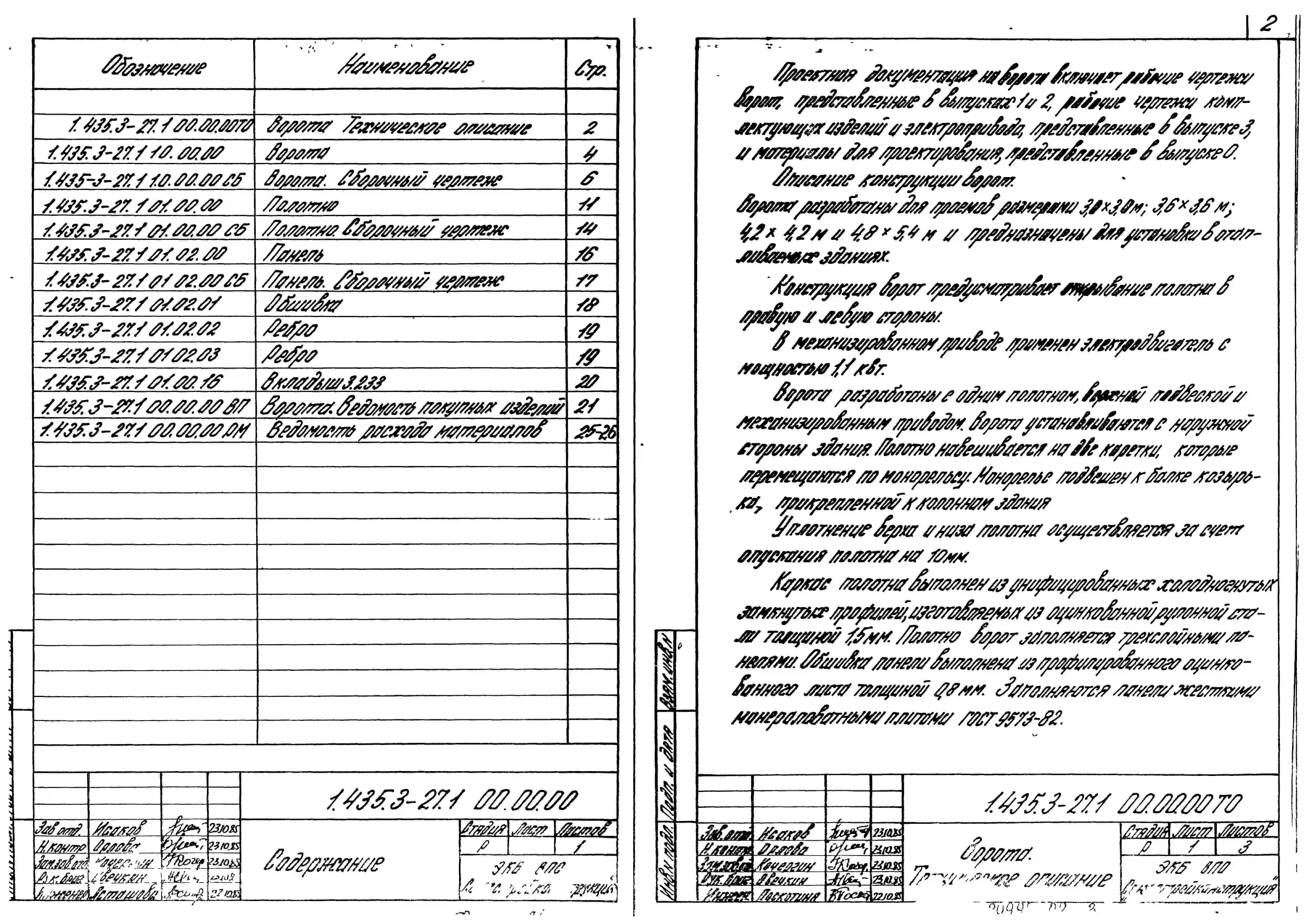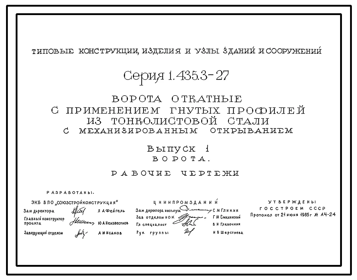 Серия 1.435.3-27 Ворота откатные с применением гнутых профилей из тонколистовой стали с механизированным открыванием. Материалы для проектирования и рабочие чертежи.