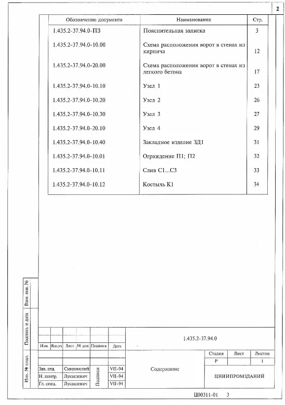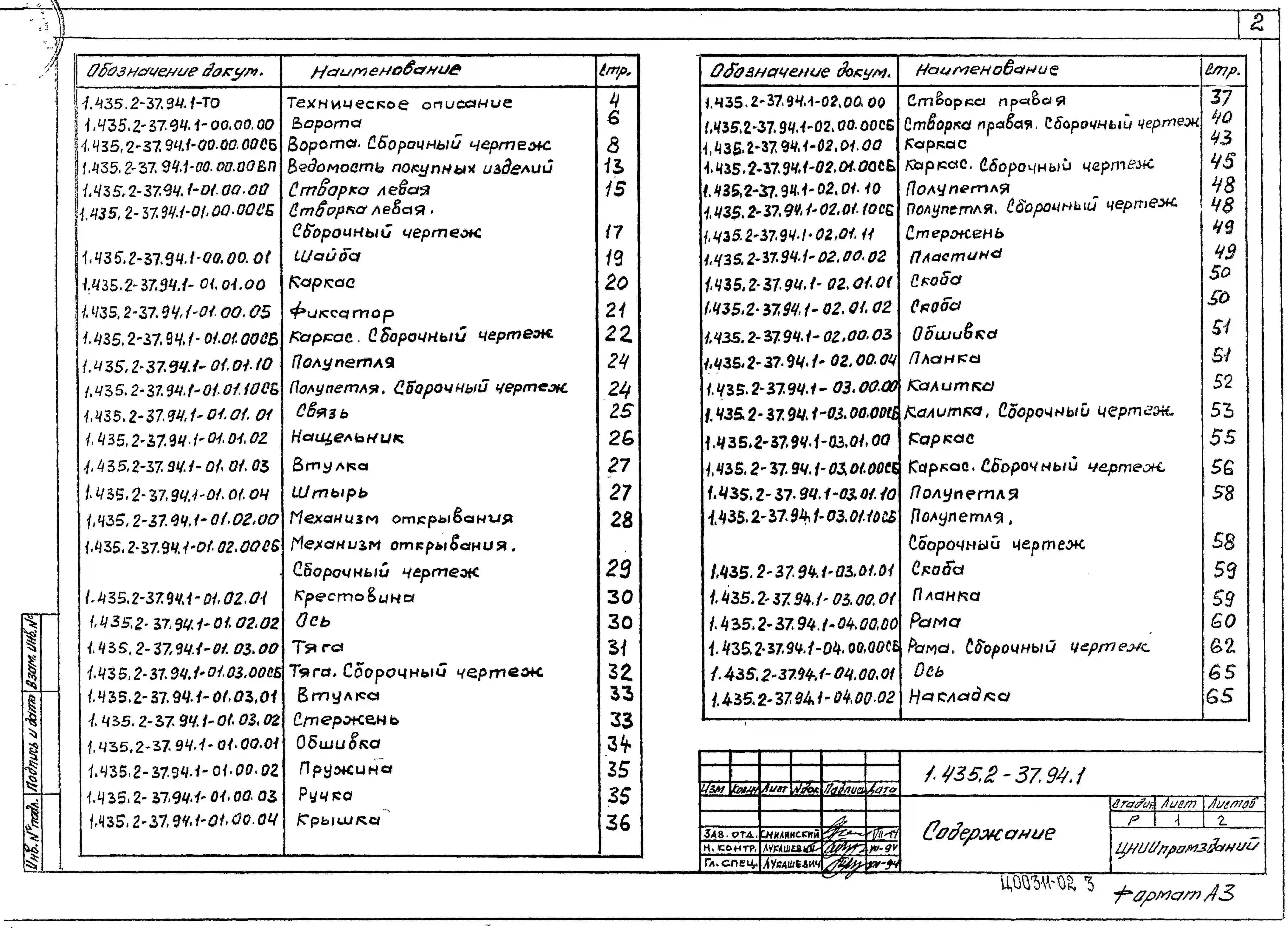 Серия 1.435.2-37.94 Ворота металлические распашные противопожарные искронедающие для производственных зданий промышленных предприятий. Рабочие чертежи.