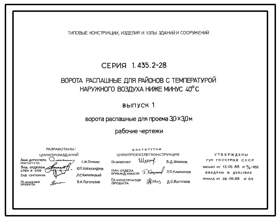 Серия 1.435.2-28 Ворота распашные для районов с температурой наружного воздуха ниже минус 40 °С. Рабочие чертежи.