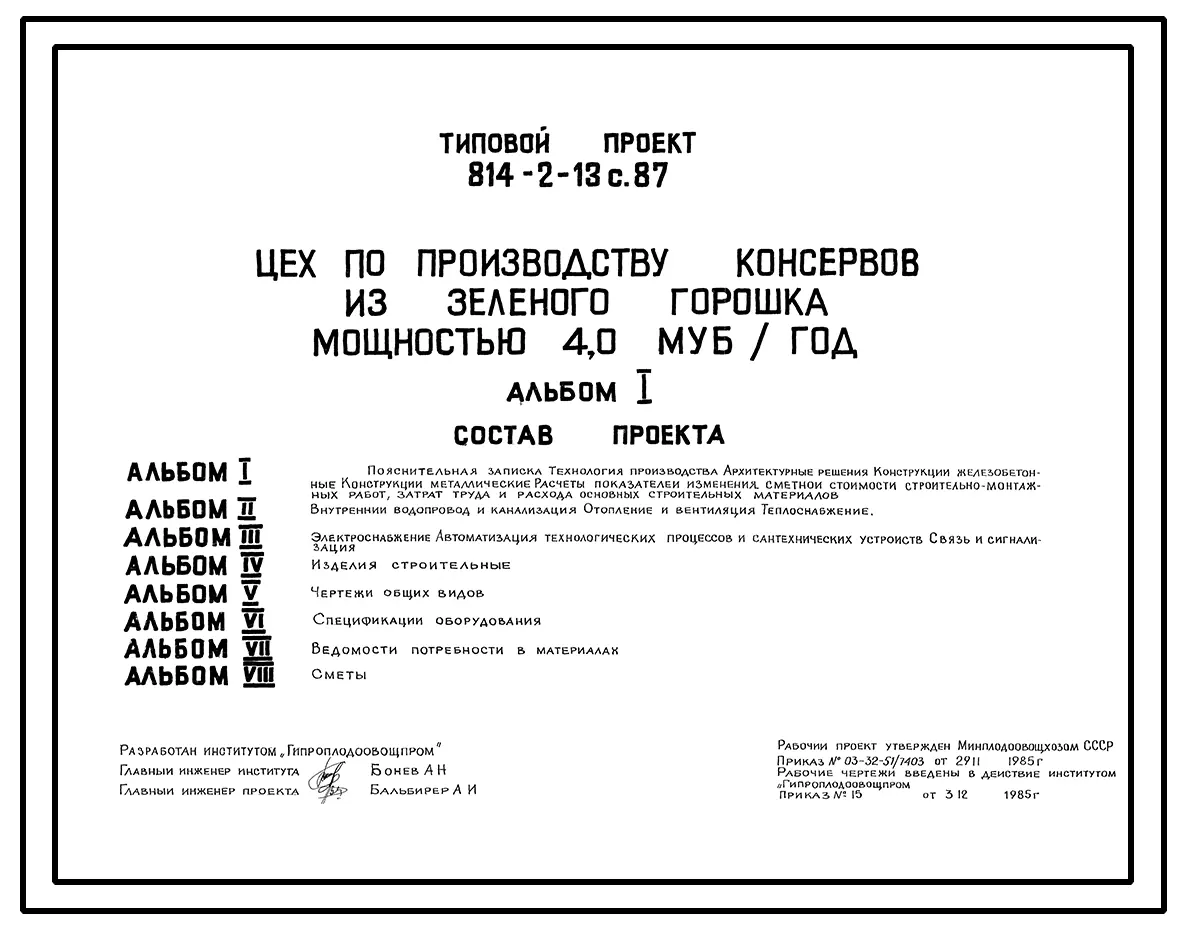 Типовой проект 814-2-13с.87 Цех по производству консервов из зеленого горошка мощностью 4,0 муб/год.