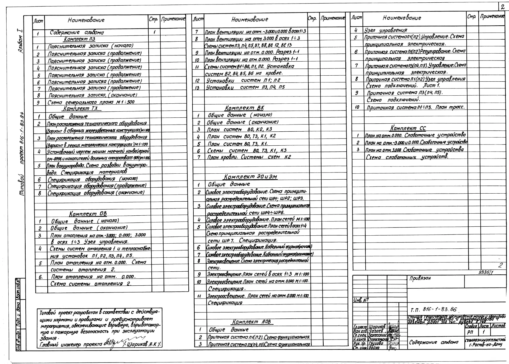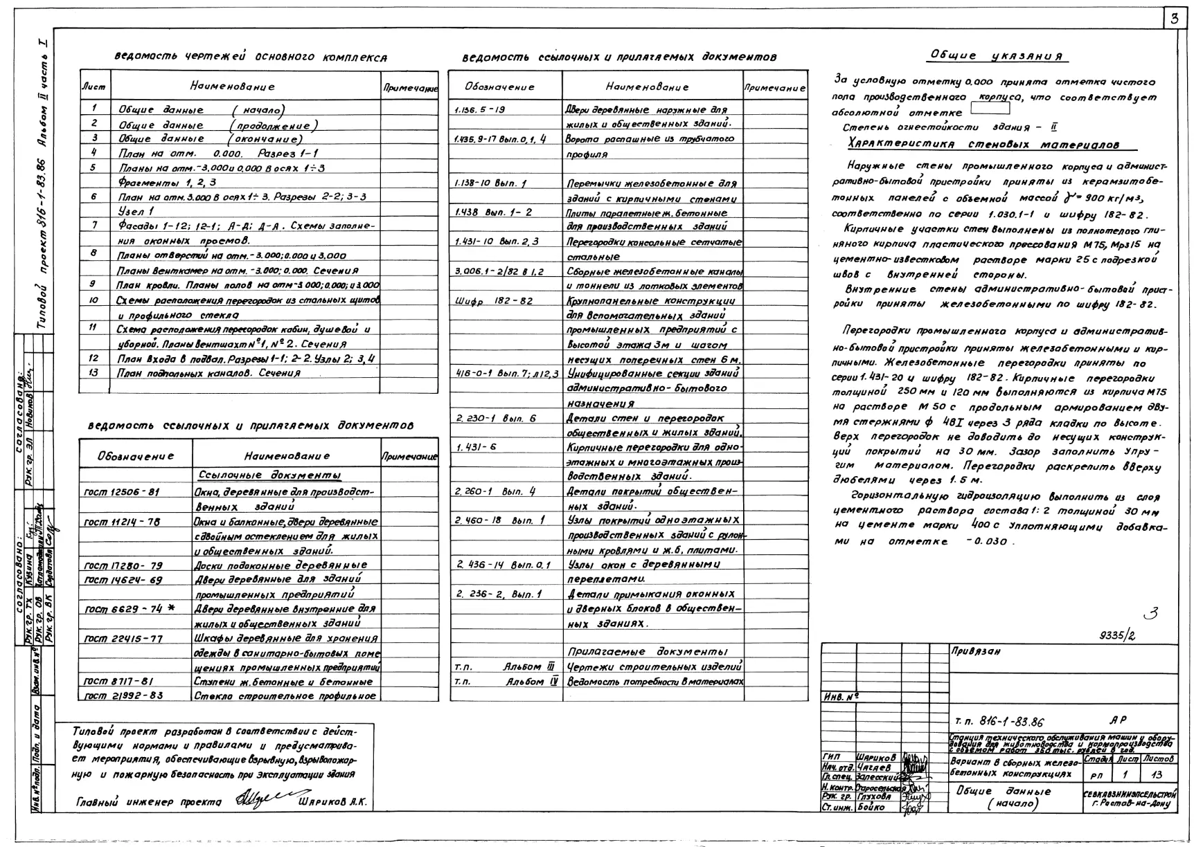 Типовой проект 816-1-83.86 Станция технического обслуживания машин и оборудования для животноводства и кормопроизводства с объемом работ 350 тыс. руб. в год