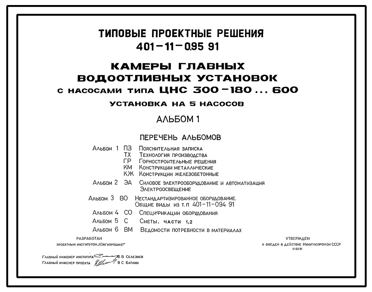 Типовой проект 401-11-095.91 Камеры главных водоотливных установок с насосами типа ЦНС-300-180…600. Установка на 5 насосов