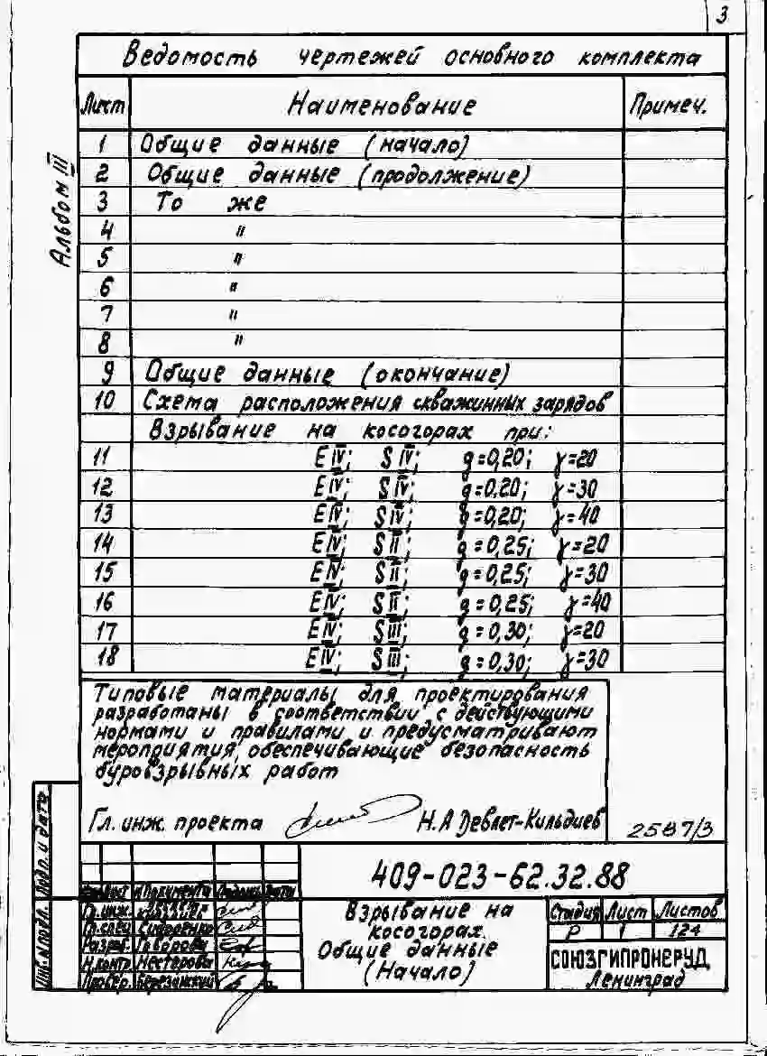 Типовой проект 409-023-62.32.88 Элементы буровзрывных работ с применением метода скважинных зарядов на карьерах промышленности нерудных строительных материалов