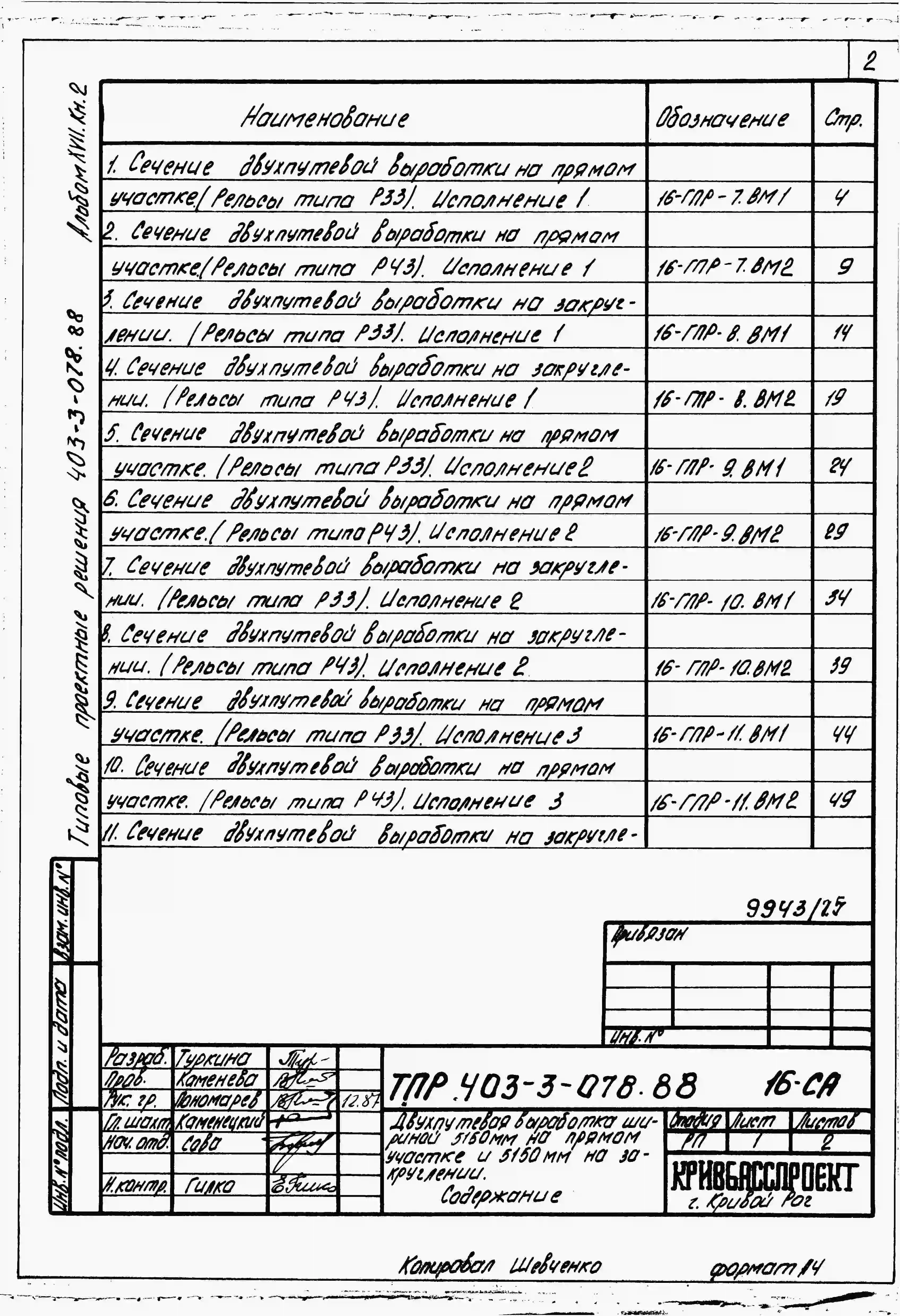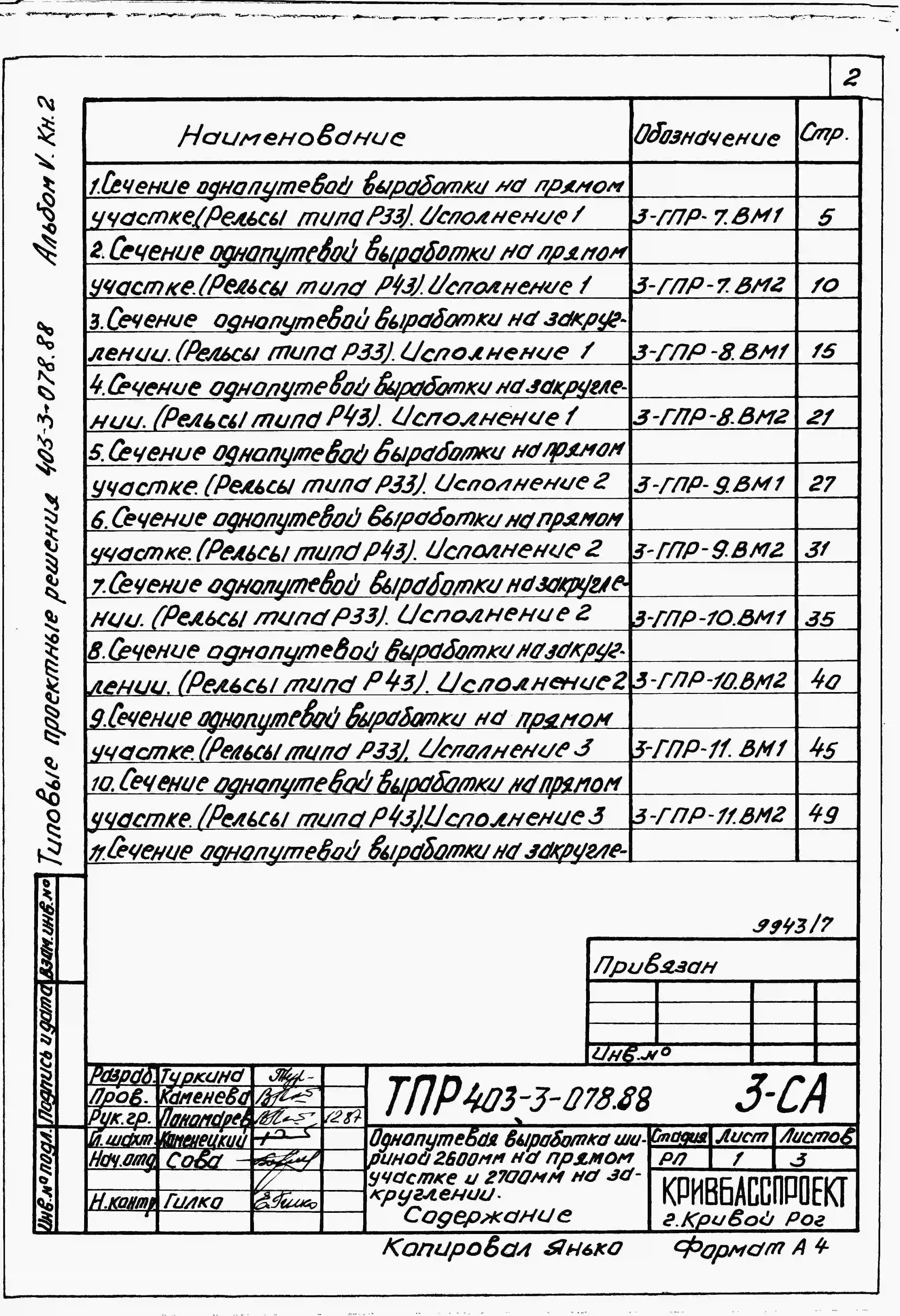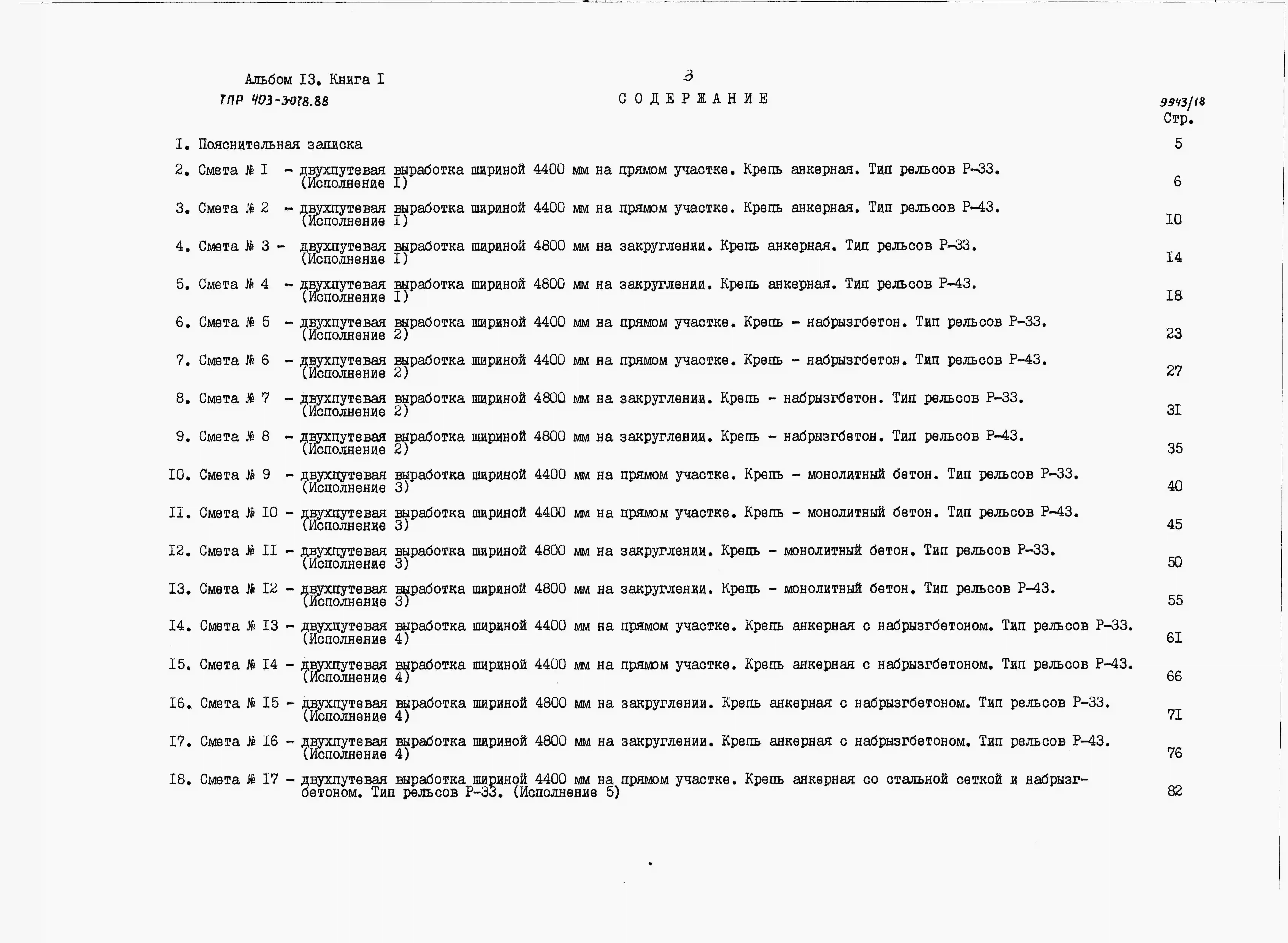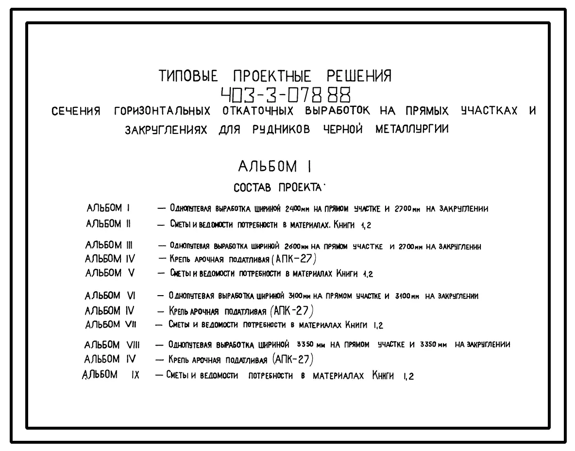 Типовой проект 403-3-078.88 Сечения горизонтальных откаточных выработок на прямых участках и закруглениях для рудников черной металлургии. Полный проект.