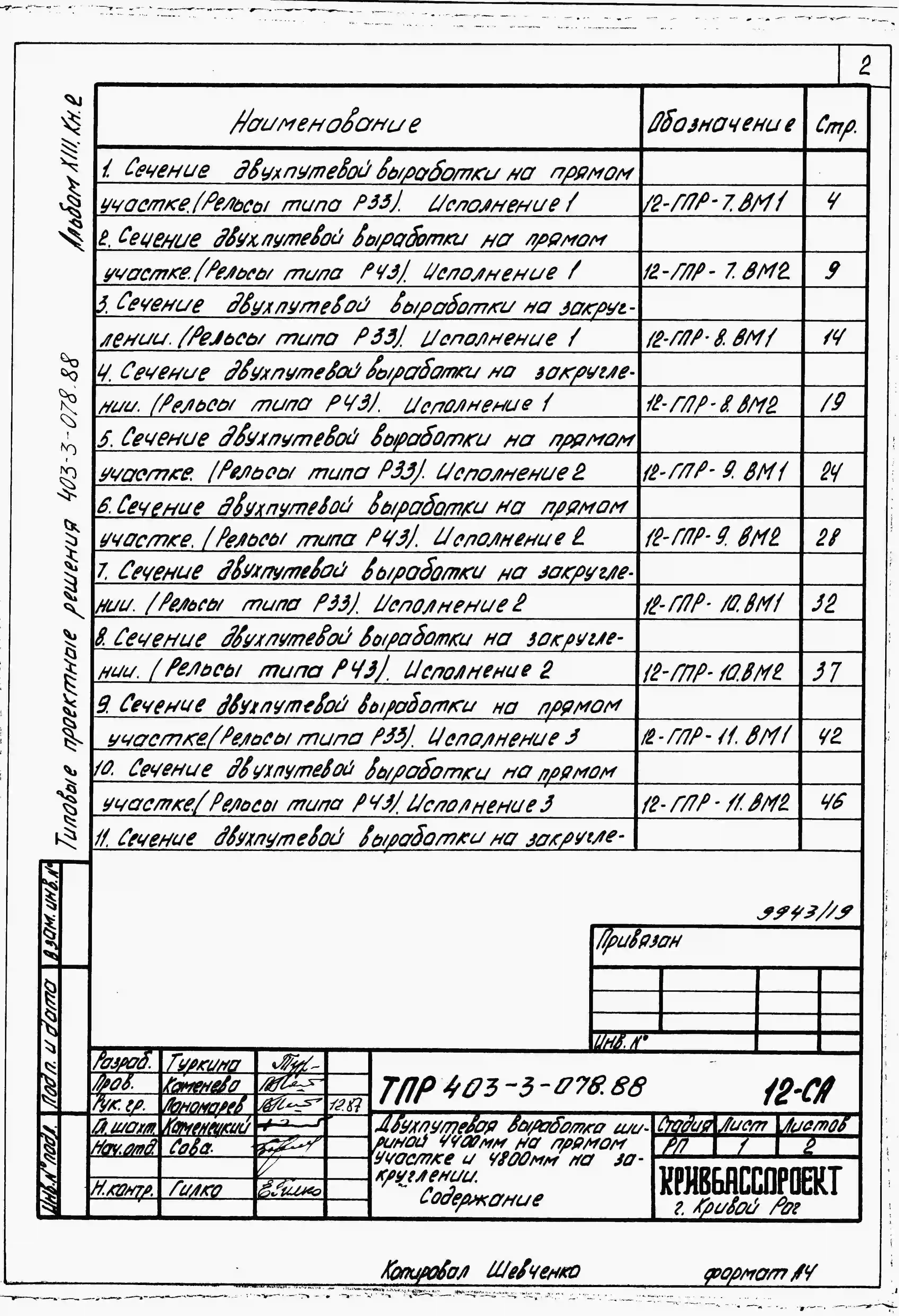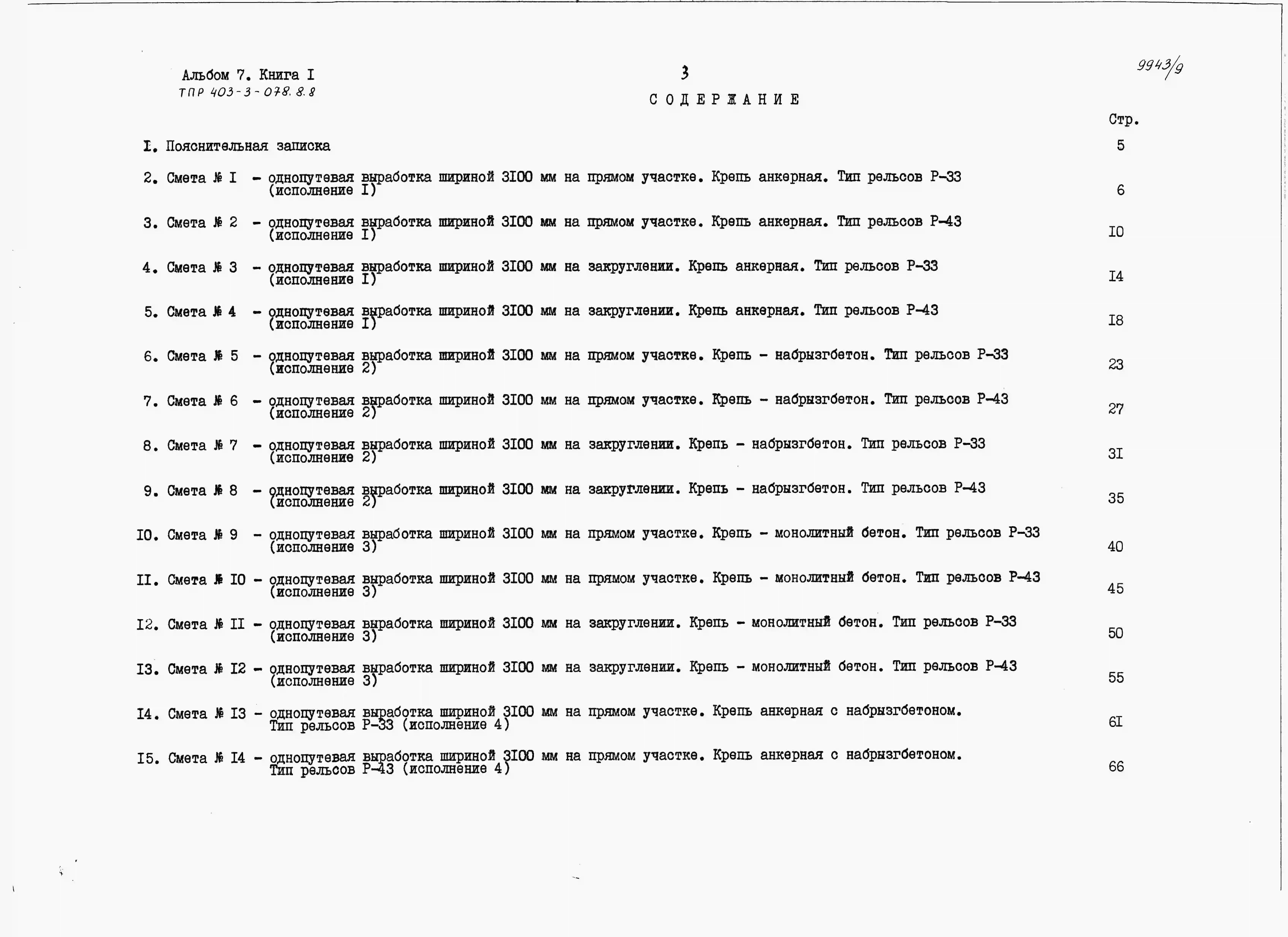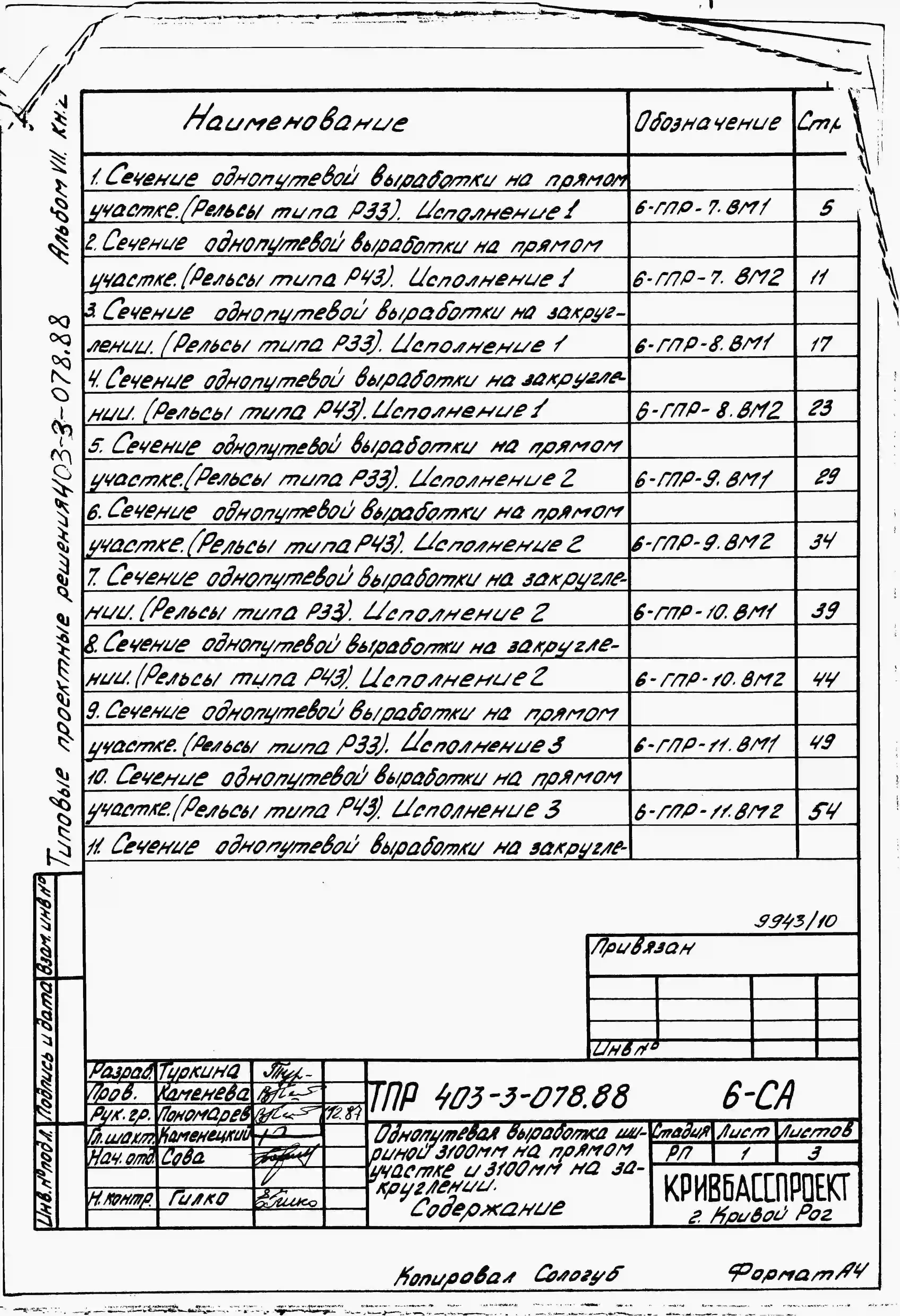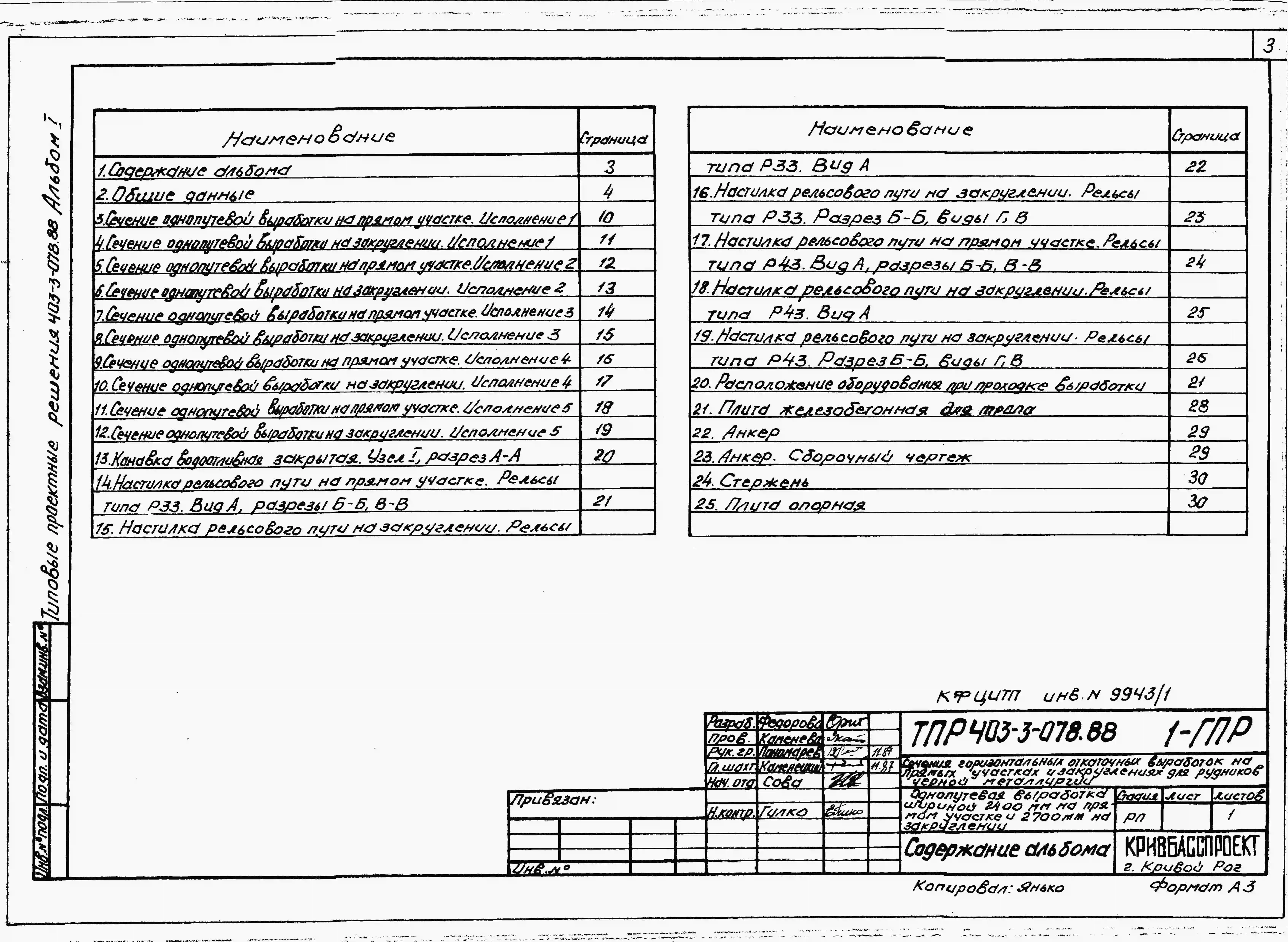 Типовой проект 403-3-078.88 Сечения горизонтальных откаточных выработок на прямых участках и закруглениях для рудников черной металлургии. Полный проект.