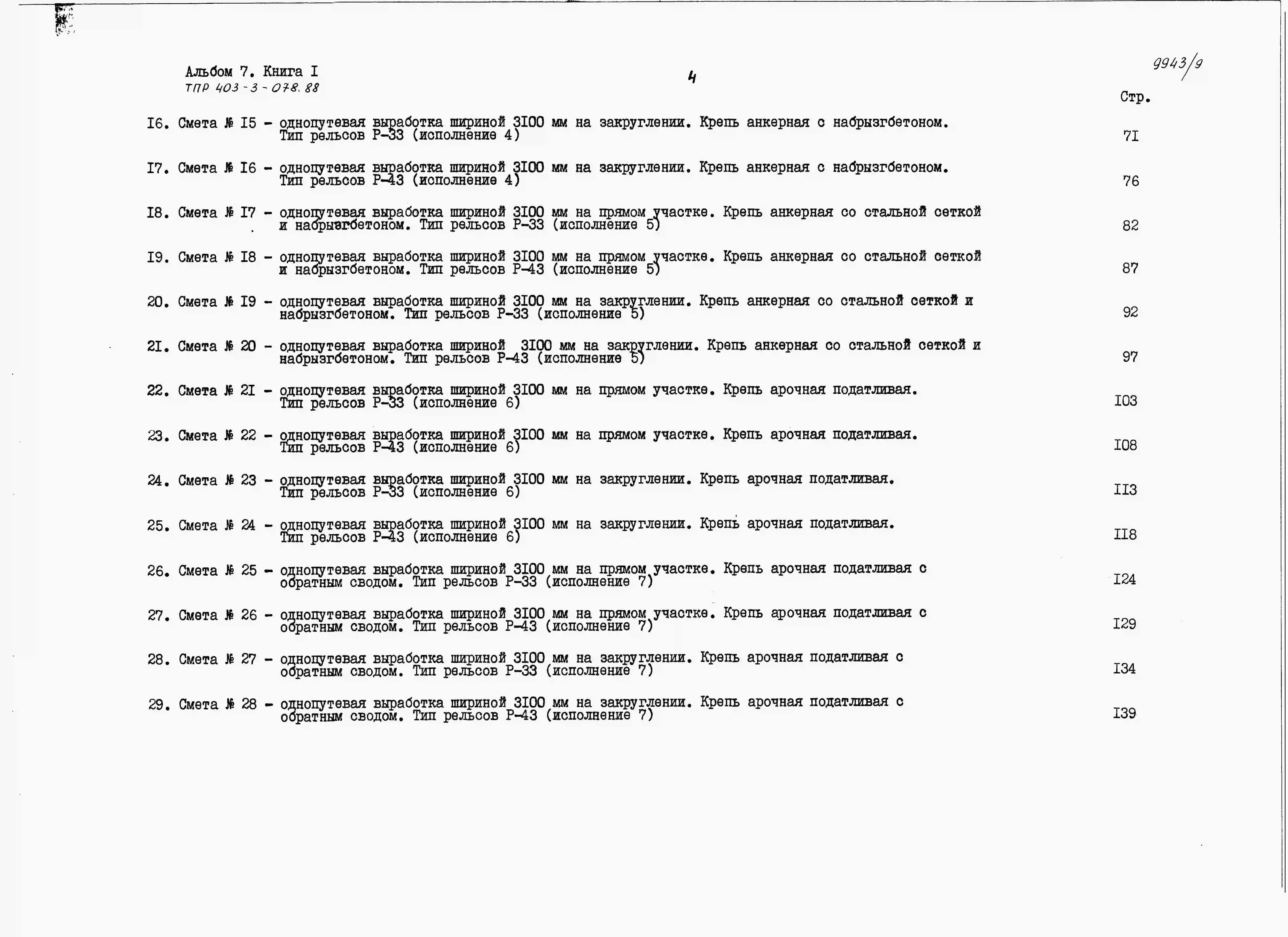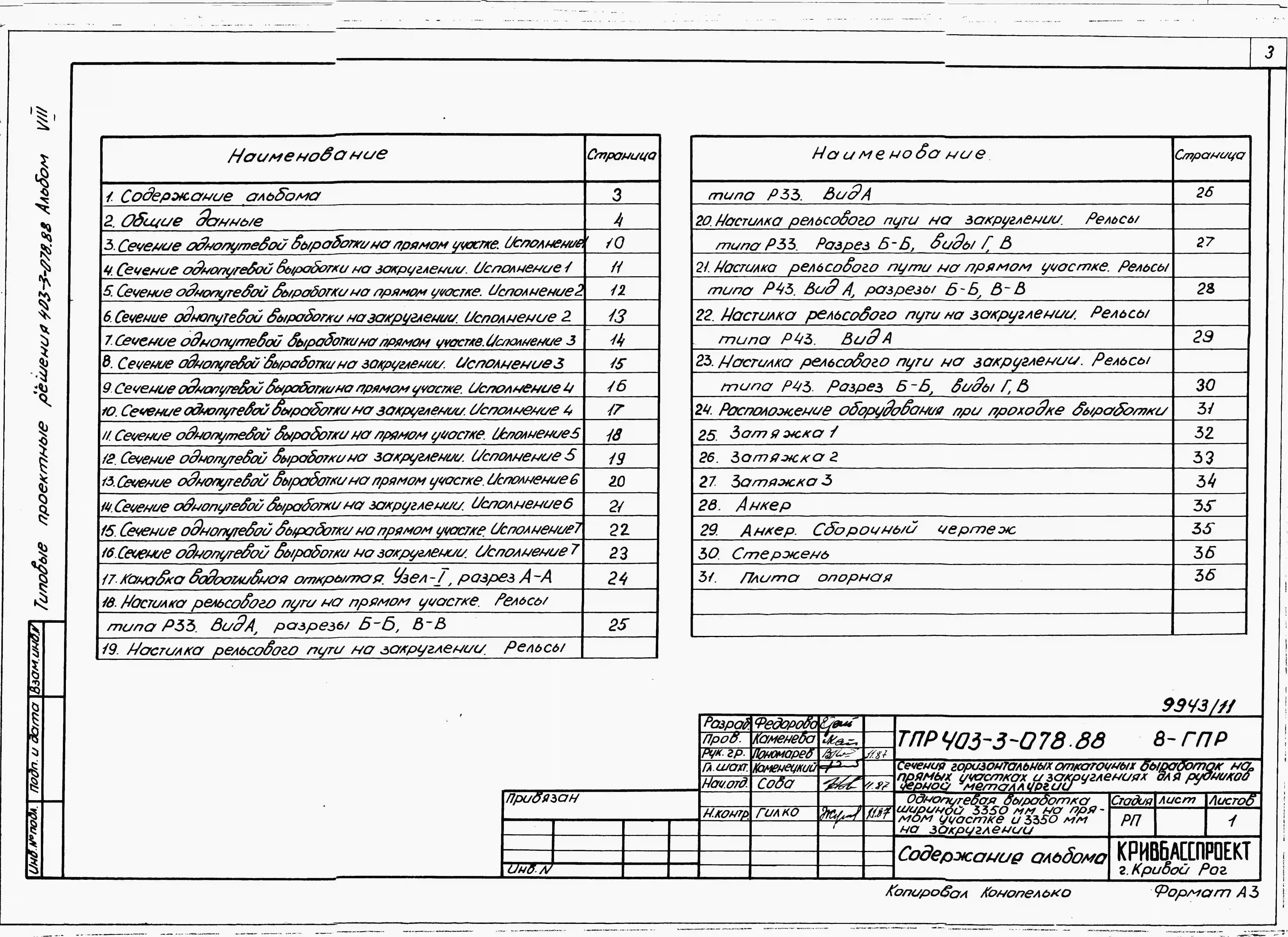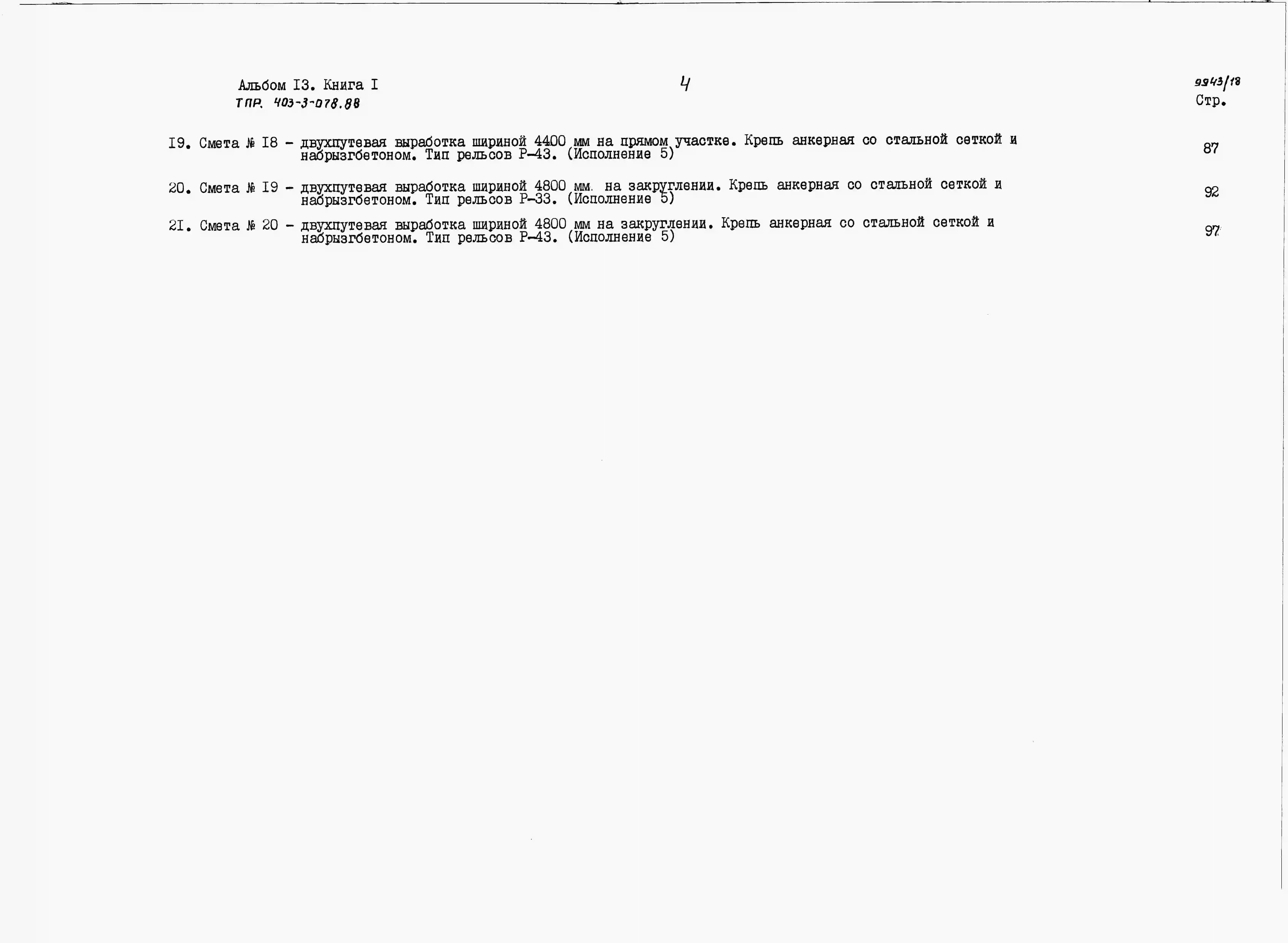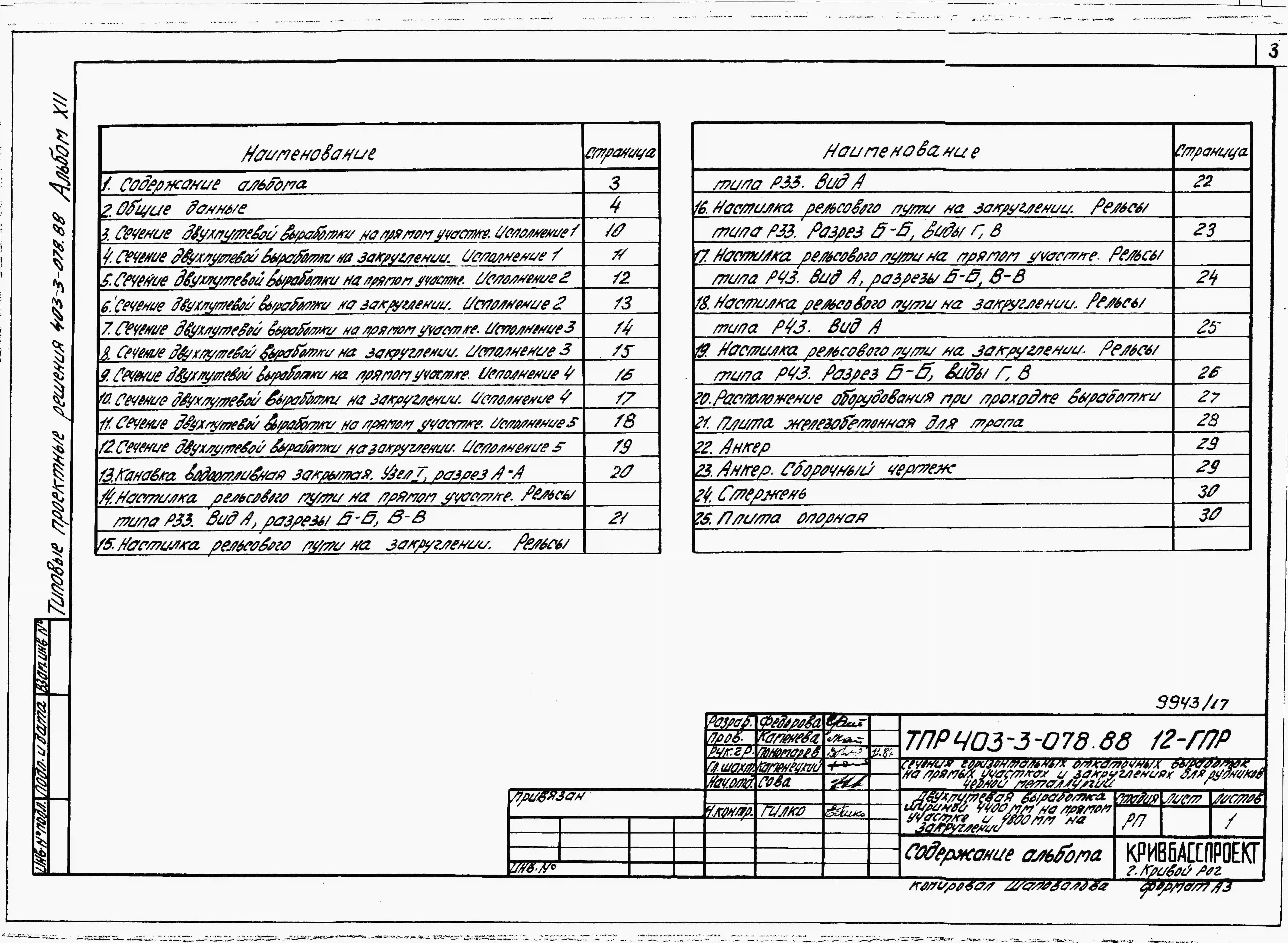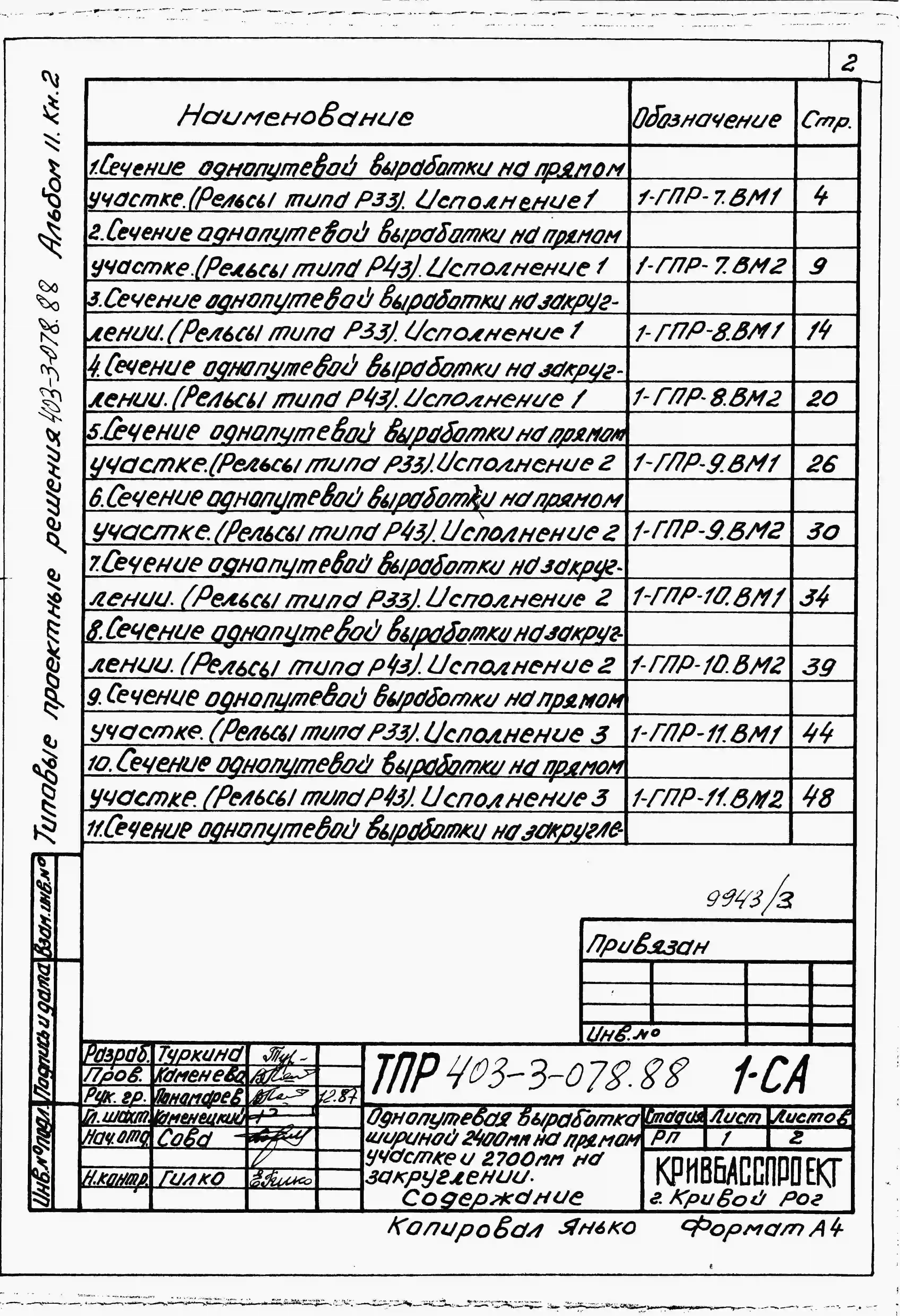 Типовой проект 403-3-078.88 Сечения горизонтальных откаточных выработок на прямых участках и закруглениях для рудников черной металлургии. Полный проект.