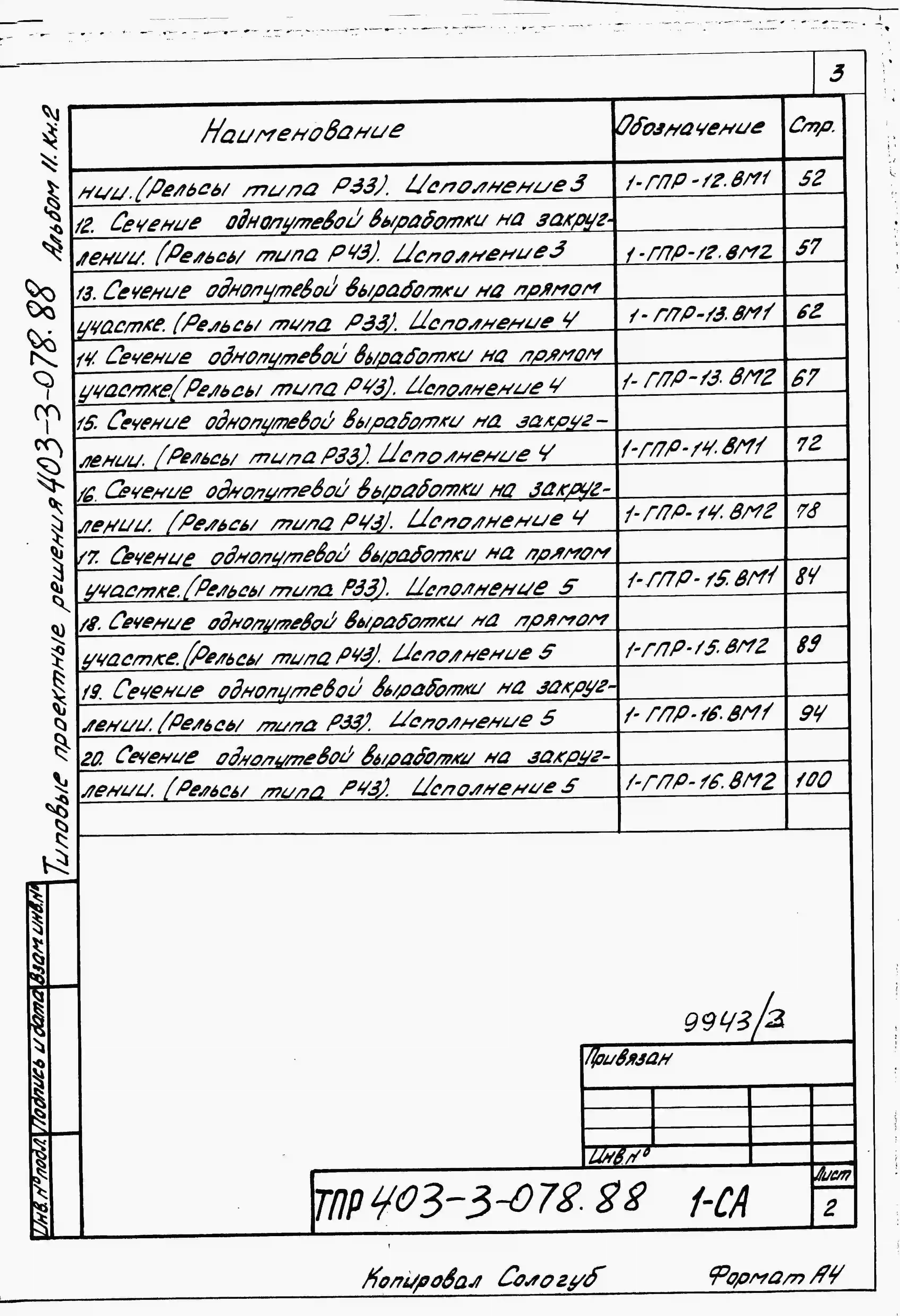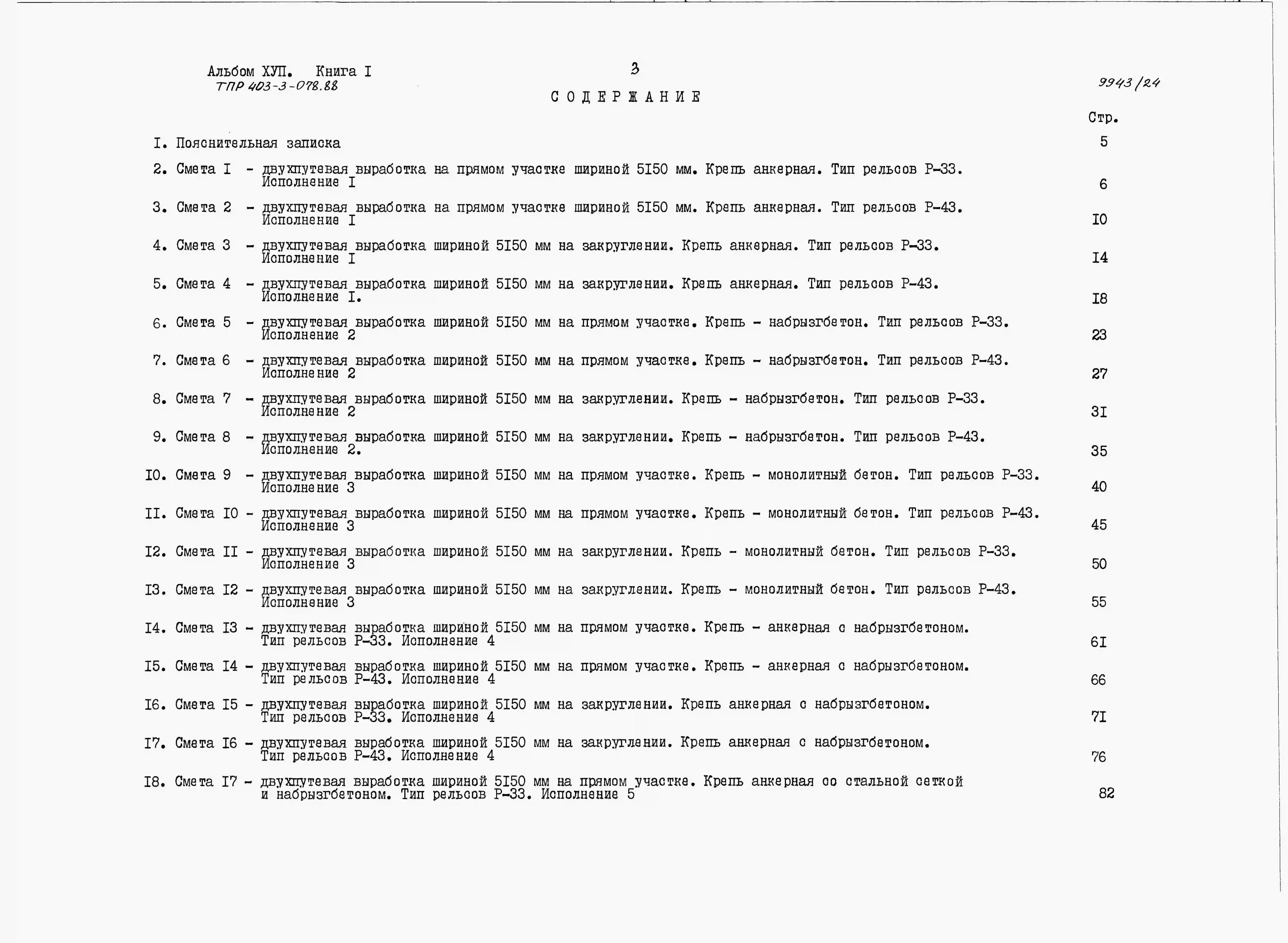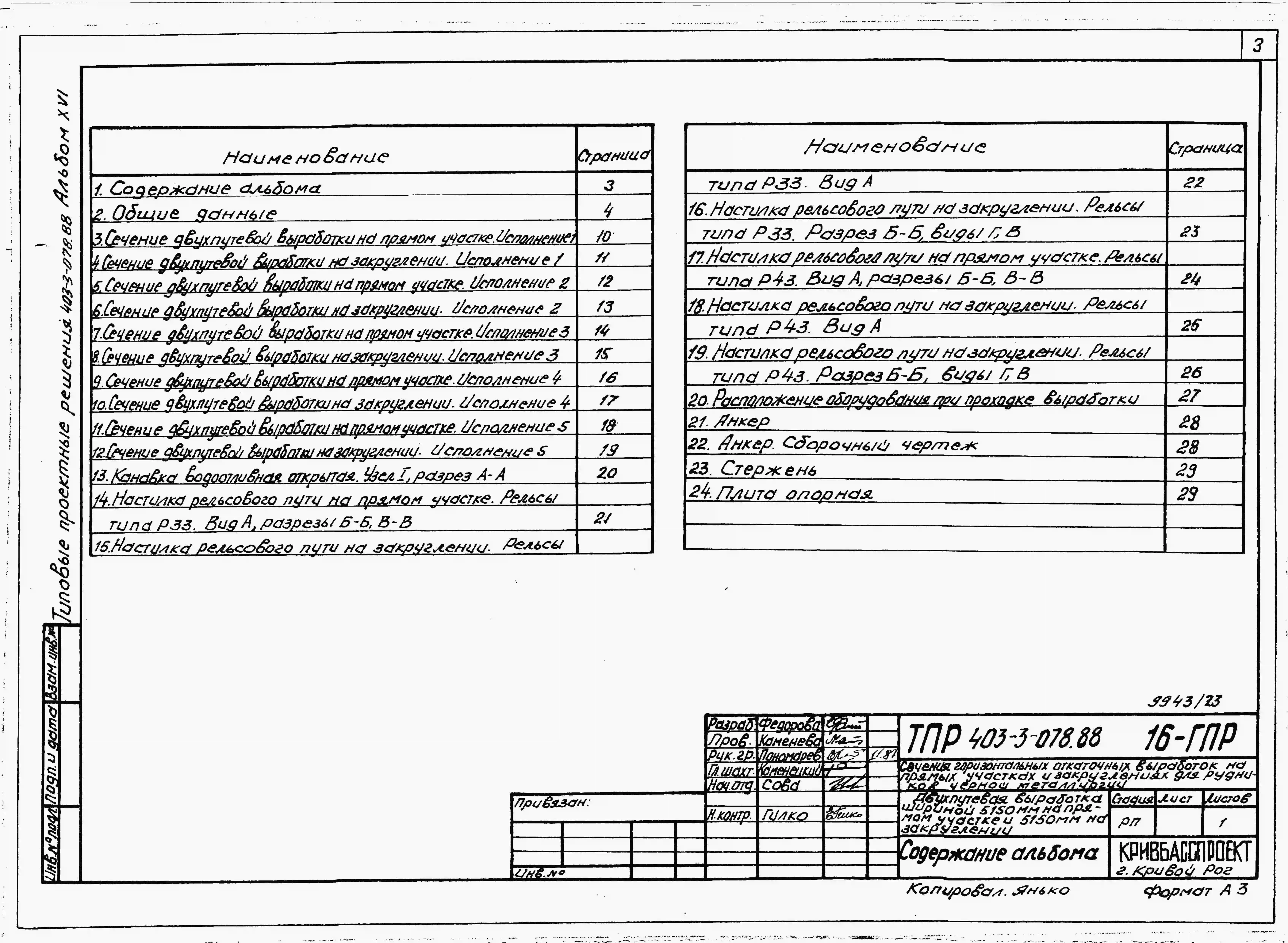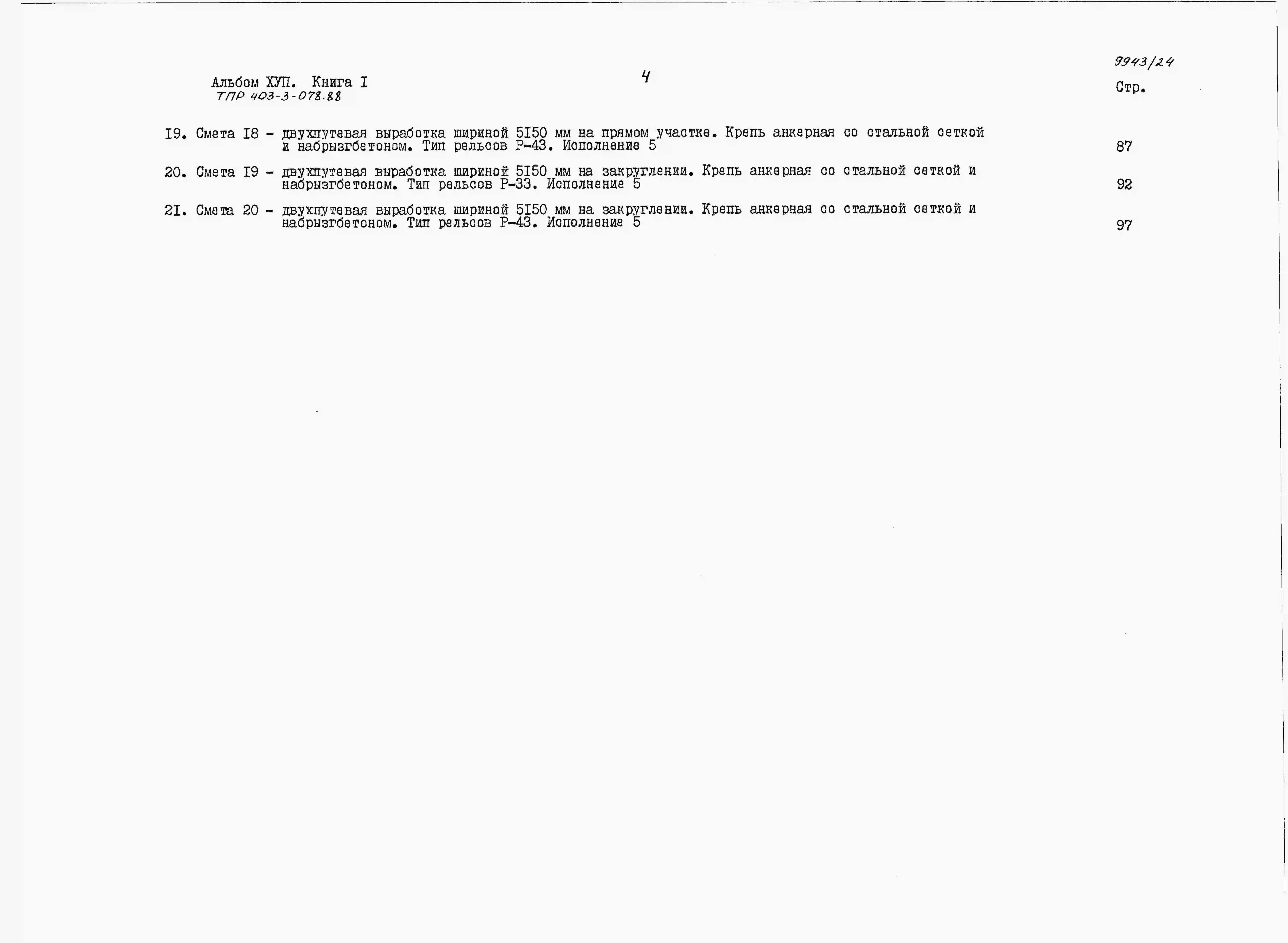 Типовой проект 403-3-078.88 Сечения горизонтальных откаточных выработок на прямых участках и закруглениях для рудников черной металлургии. Полный проект.